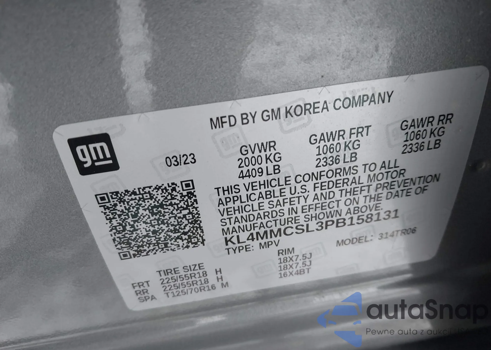 • VIN KL4MMCSL3PB158131