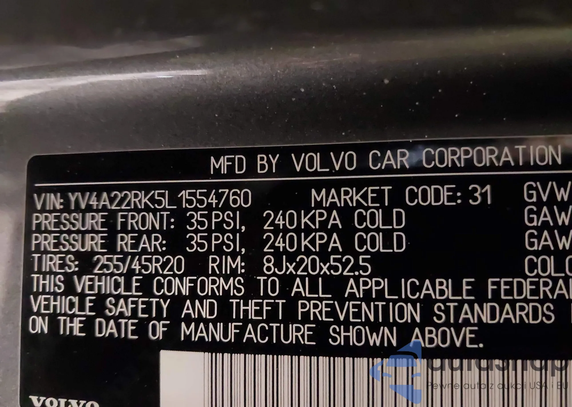 • VIN YV4A22RK5L1554760