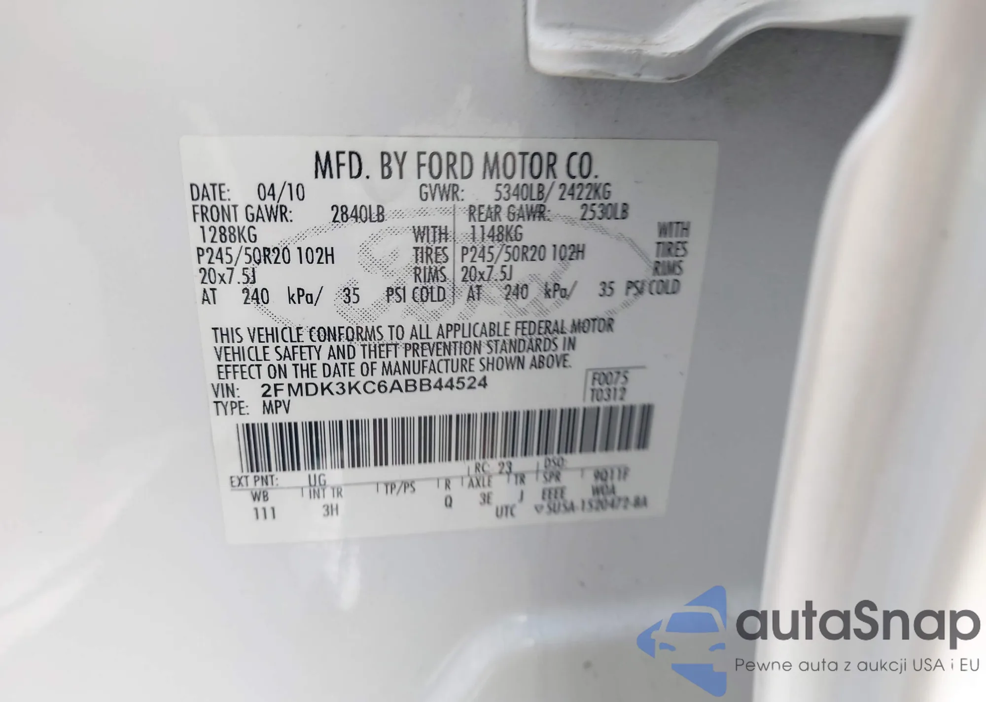LOT: 44124370 VIN: KL4MMCSL3PB158131