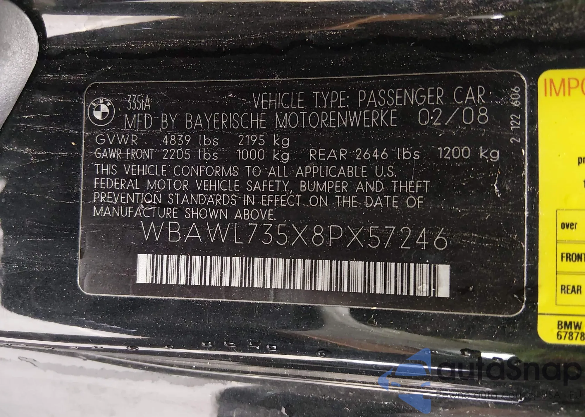 • VIN WBAWL735X8PX57246