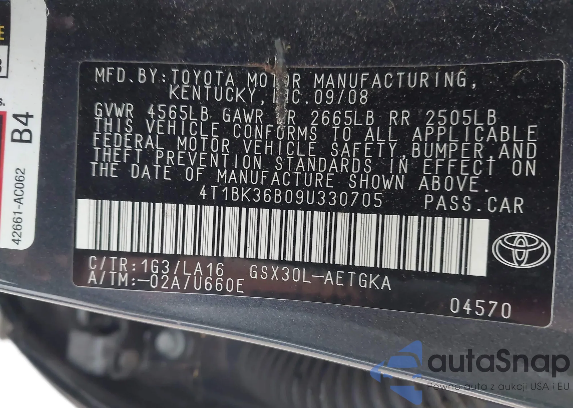 LOT: 44049402 VIN: JTDKB20U277690157