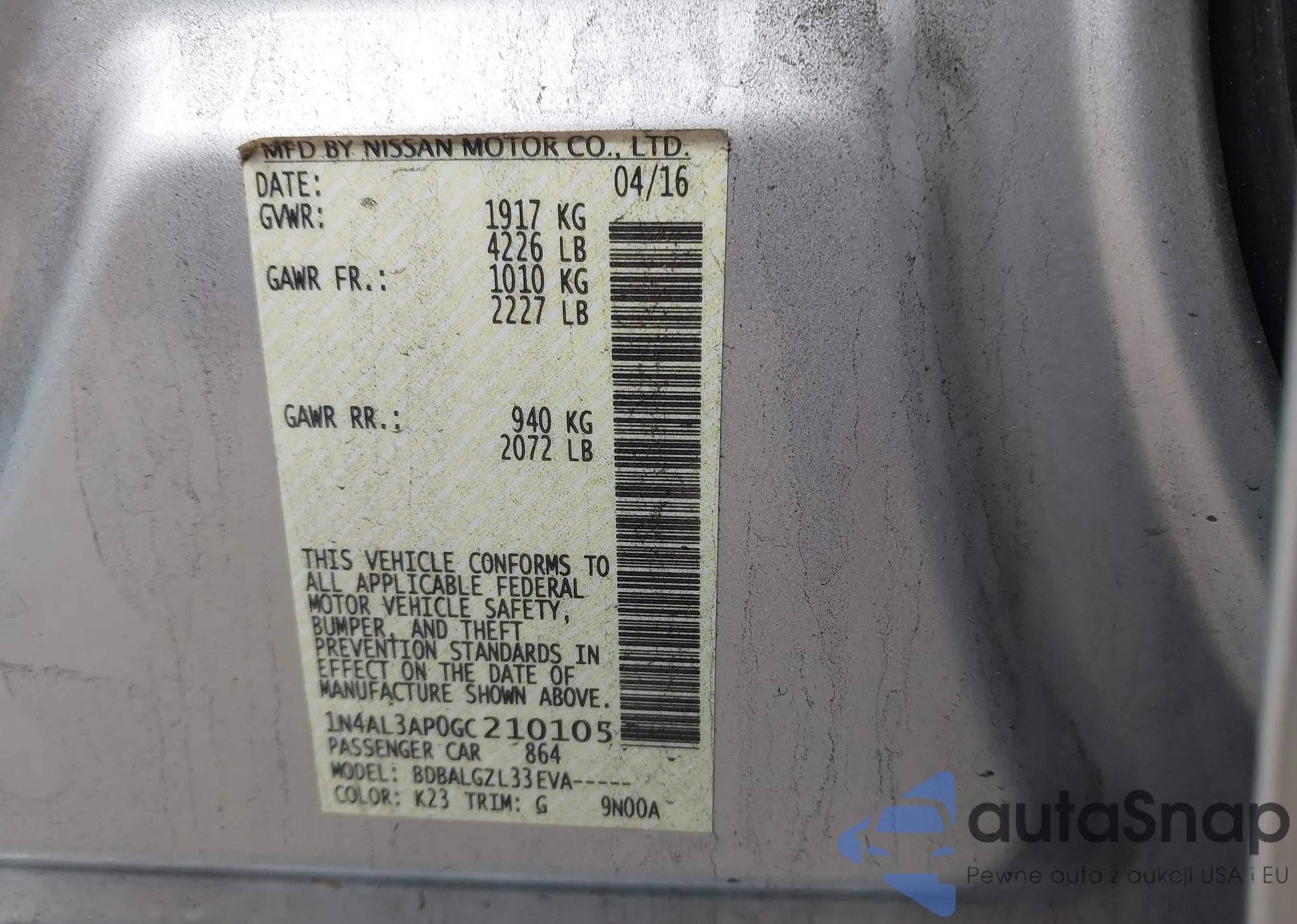 LOT: 44094733 VIN: 1N4AL3AP0GC210105