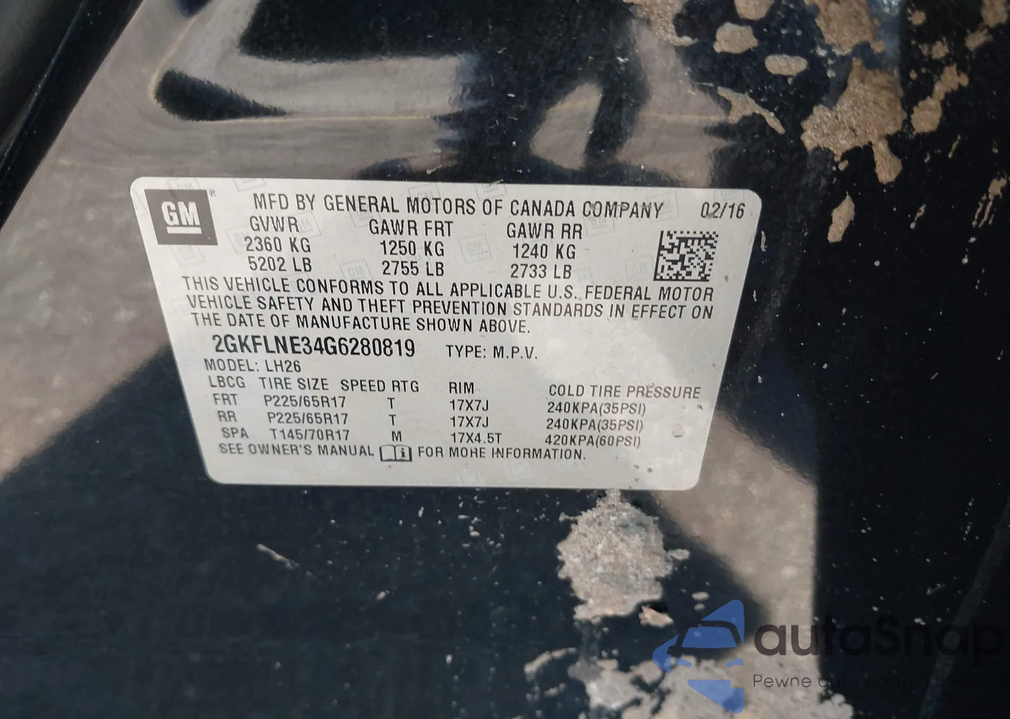LOT: 43684843 VIN: 2GNALCEK0H1596239