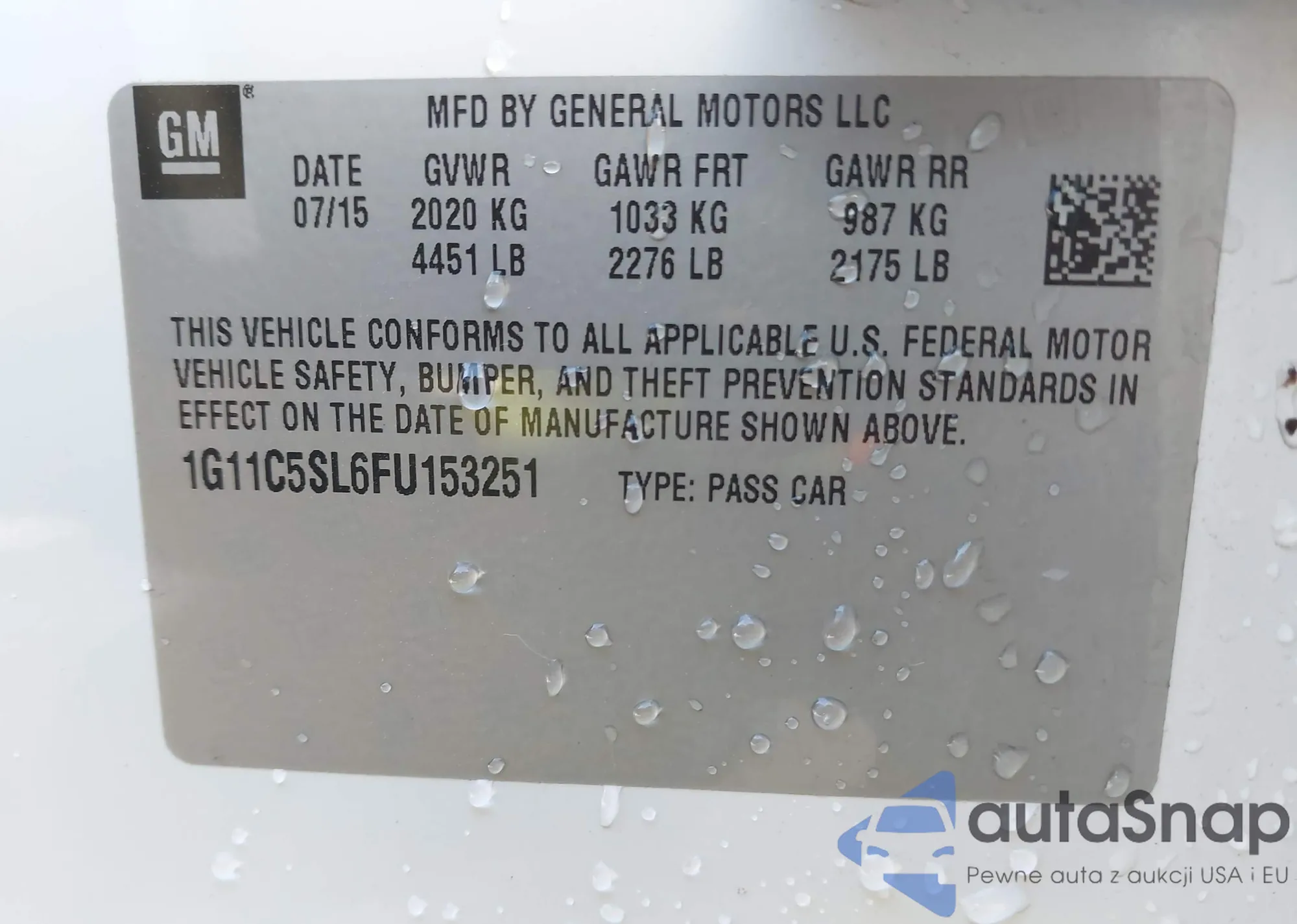 LOT: 93951015 VIN: 1G1AD5F59A7128246