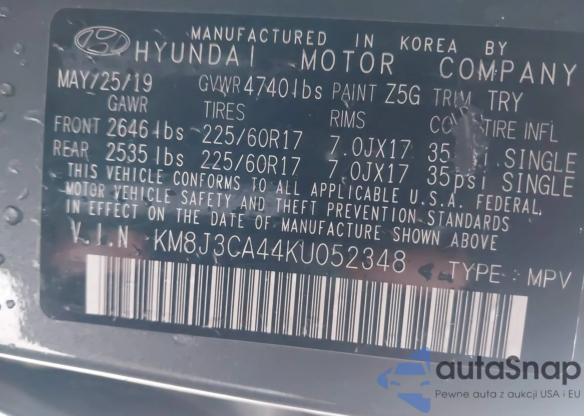 • VIN KM8J3CA44KU052348