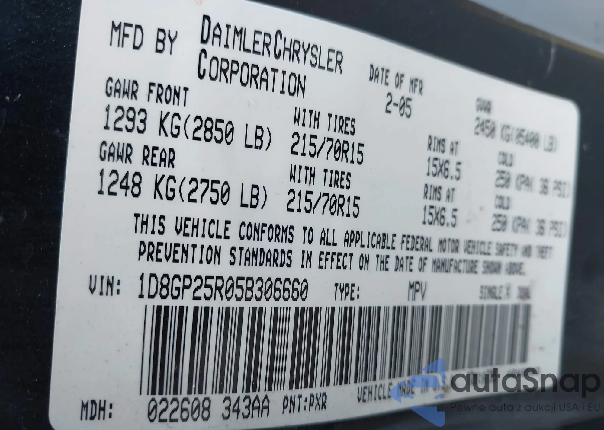 • VIN 1D8GP25R05B306660