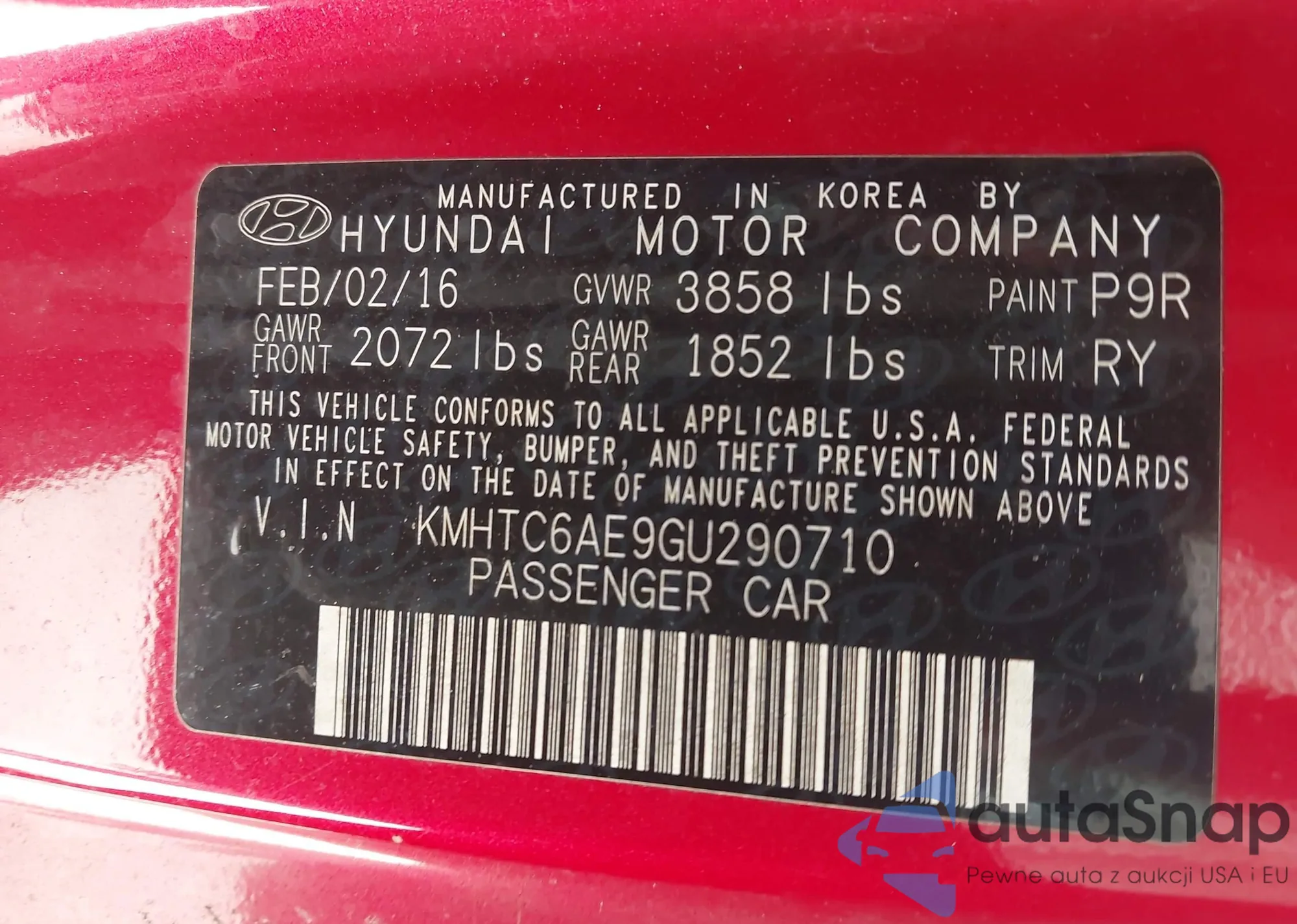 • VIN KMHTC6AE9GU290710