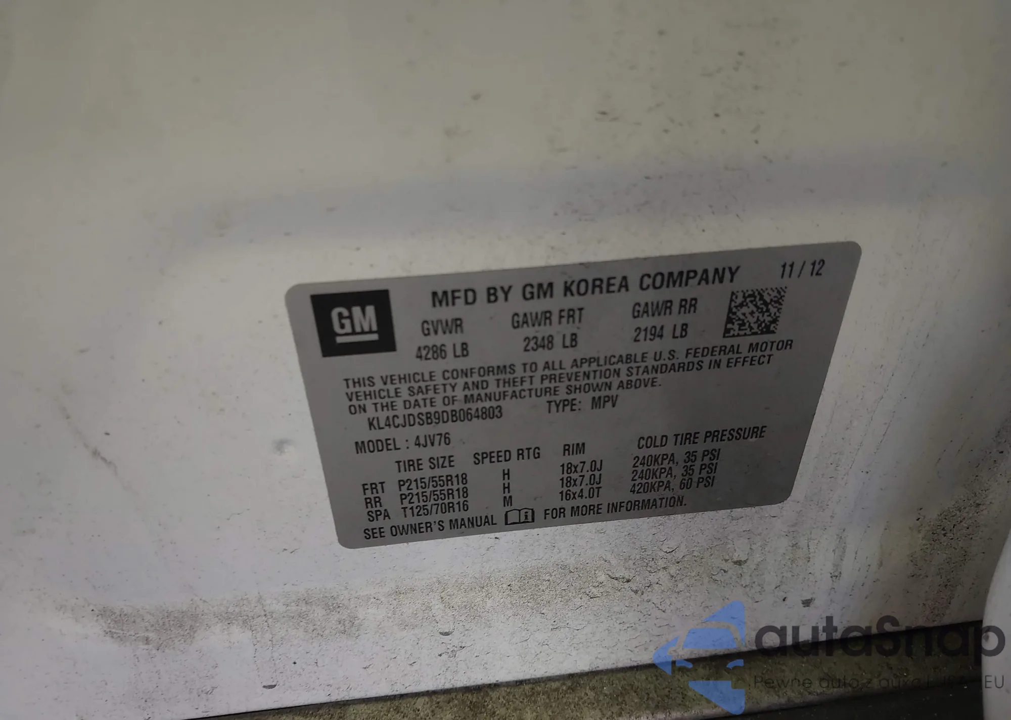• VIN KL4CJDSB9DB064803