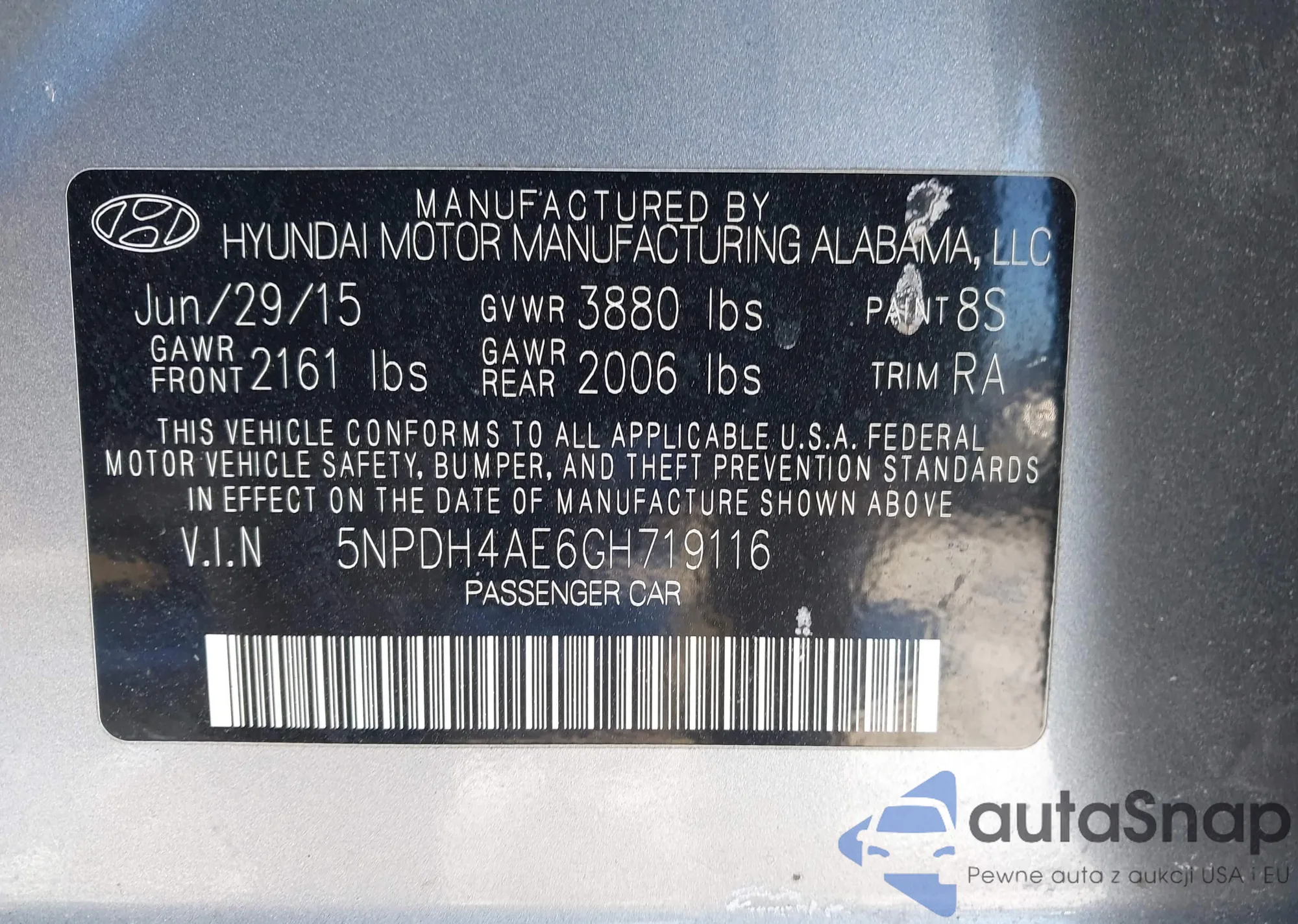 • VIN 5NPDH4AE6GH719116