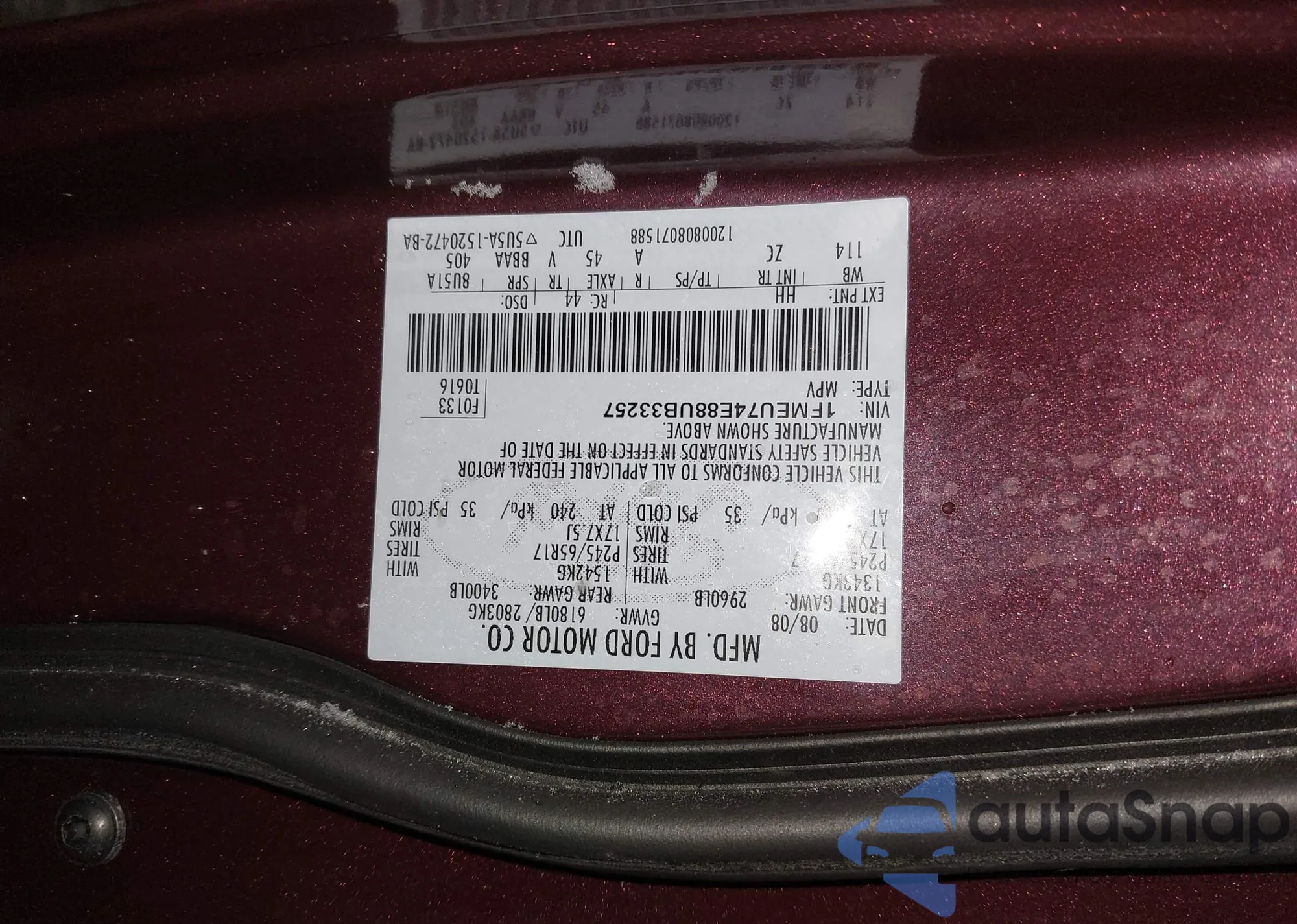 • VIN 4T1B61HK8KU294712