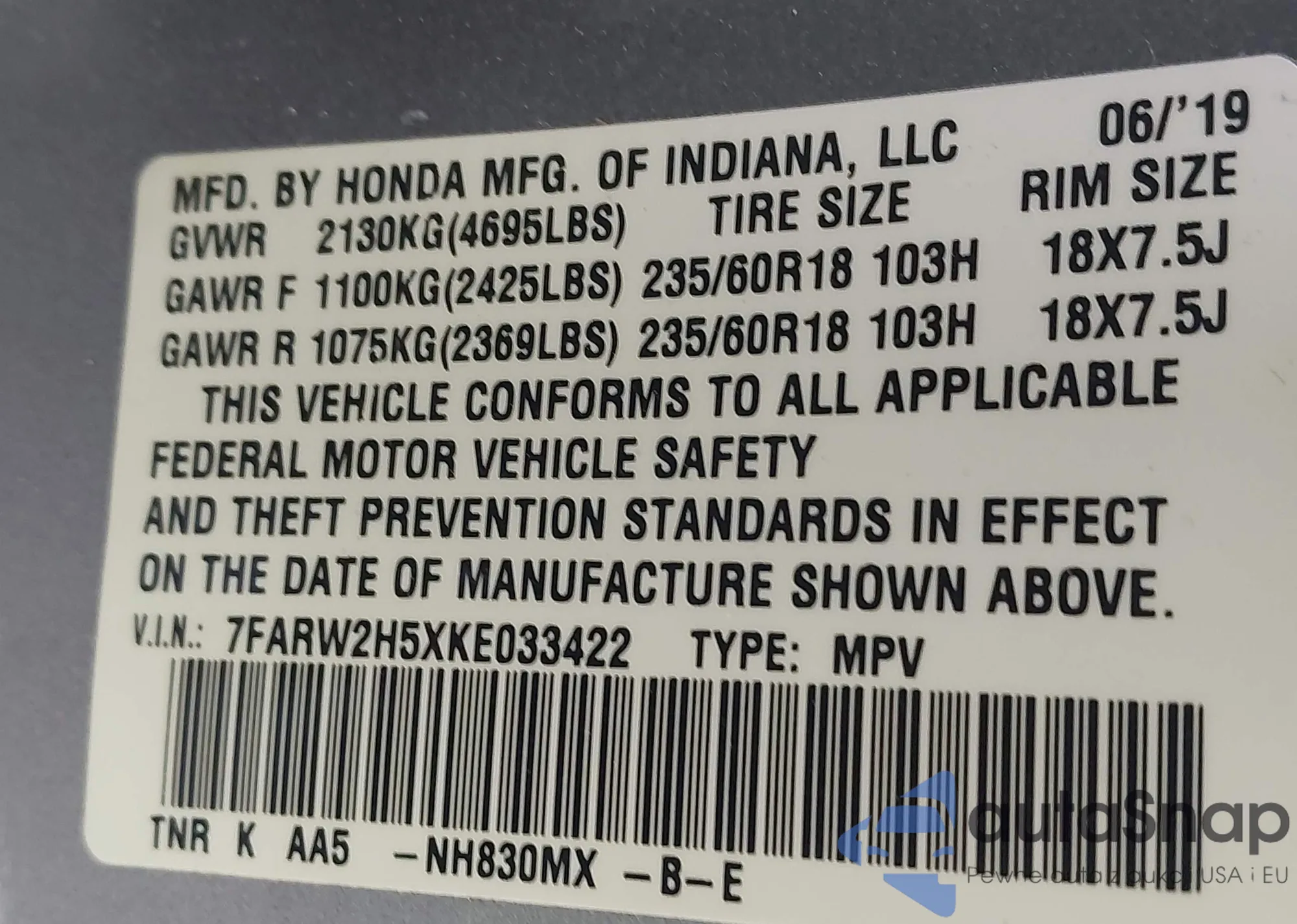 • VIN 7FARW2H5XKE033422