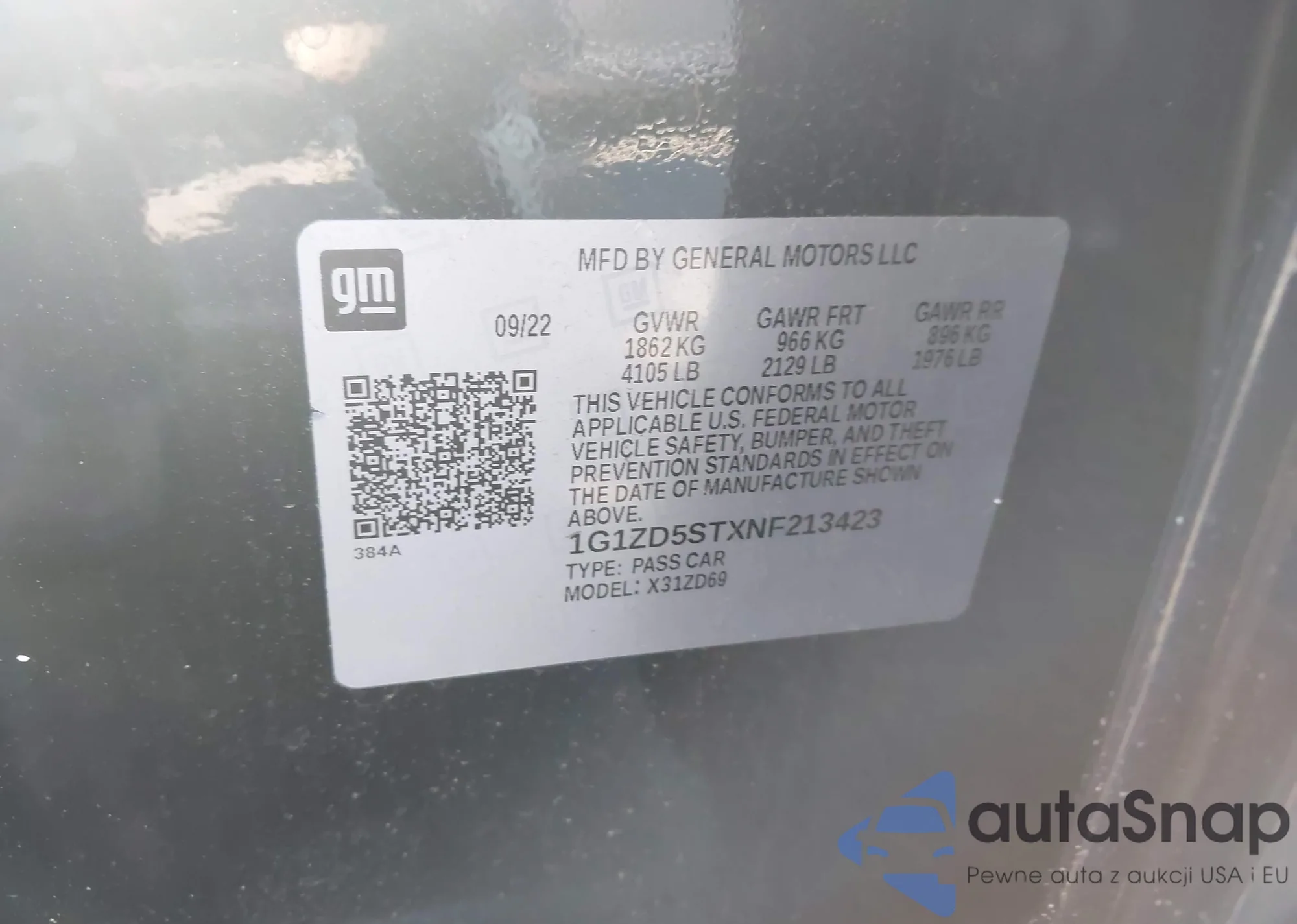 LOT: 43813259 VIN: 1G1ZD5STXNF213423