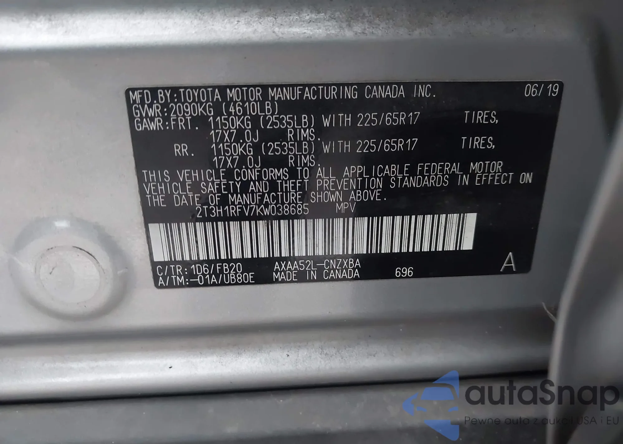 • VIN JTMZD33V685083050