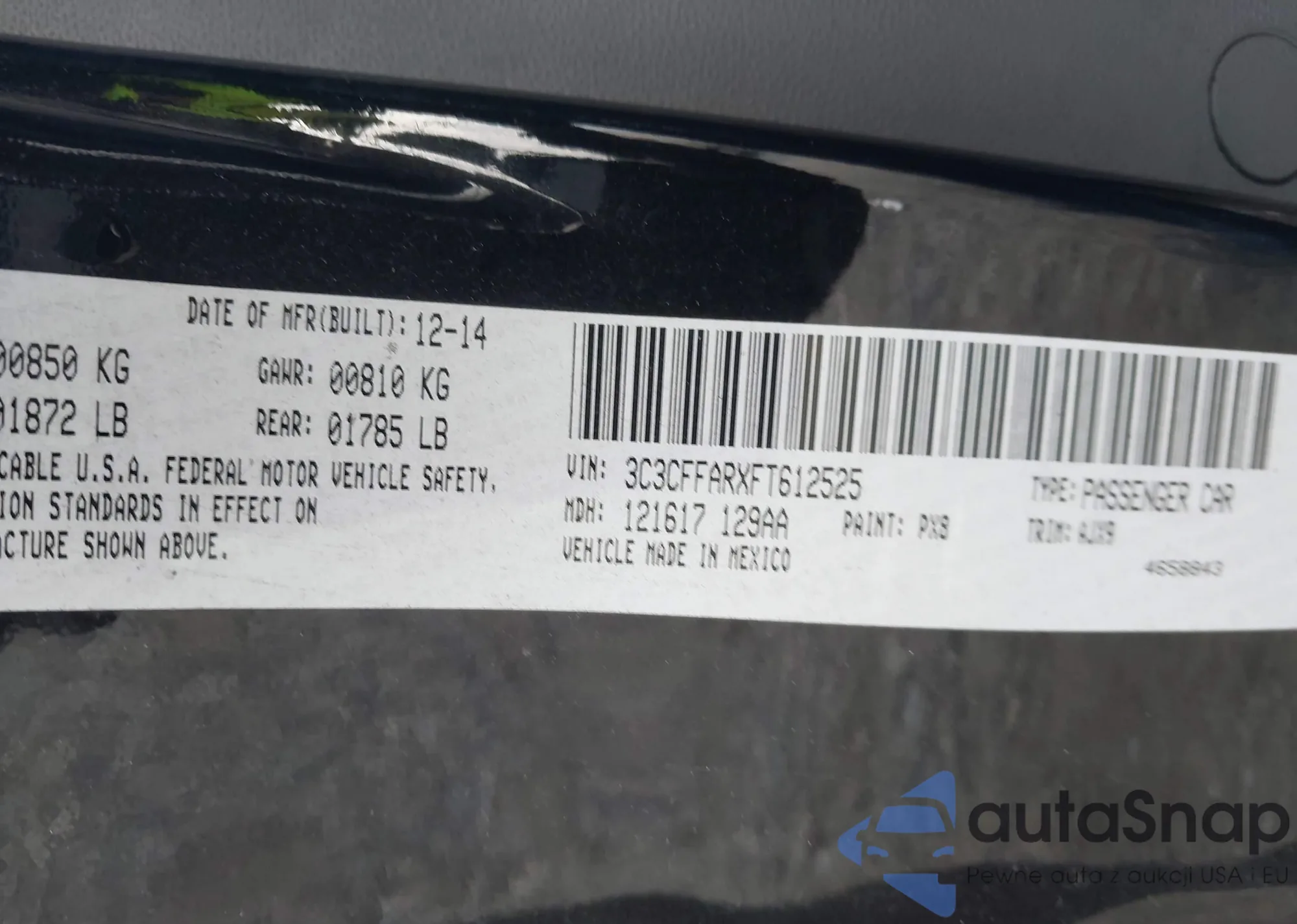 • VIN 3C3CFFARXFT612525