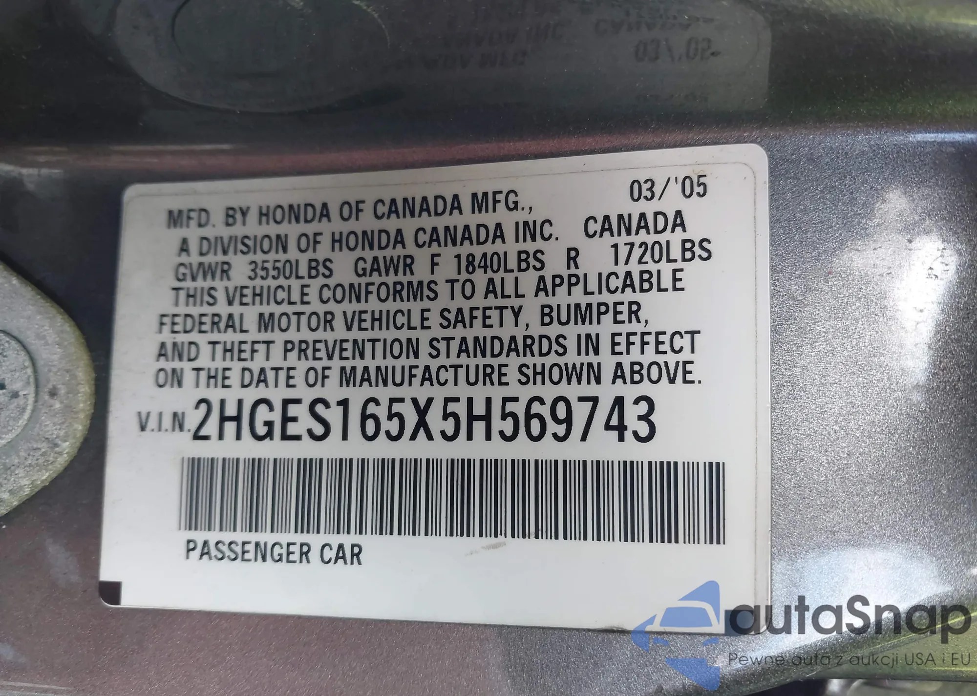 • VIN 2HGES165X5H569743