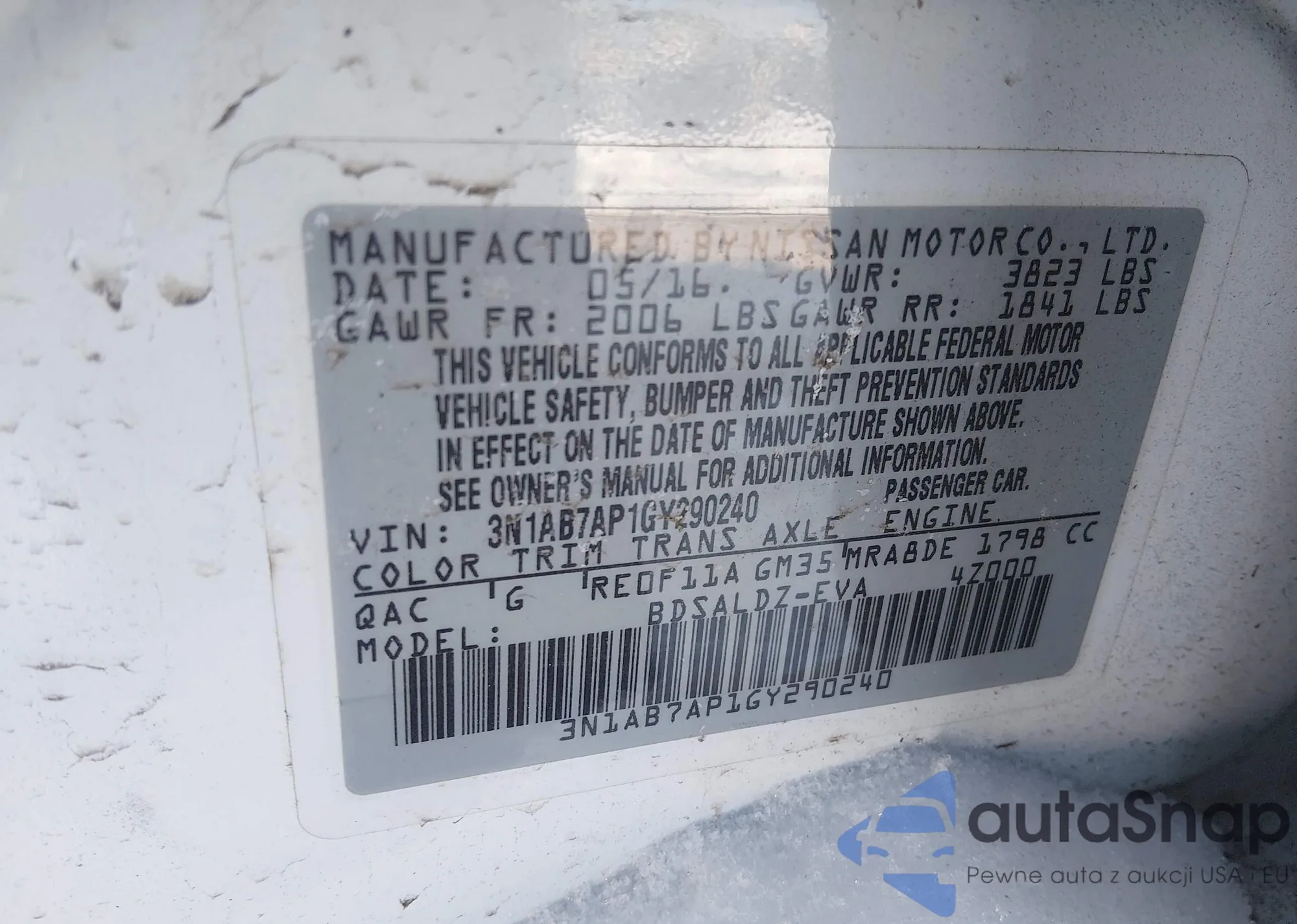 • VIN 3N1AB7AP1GY290240