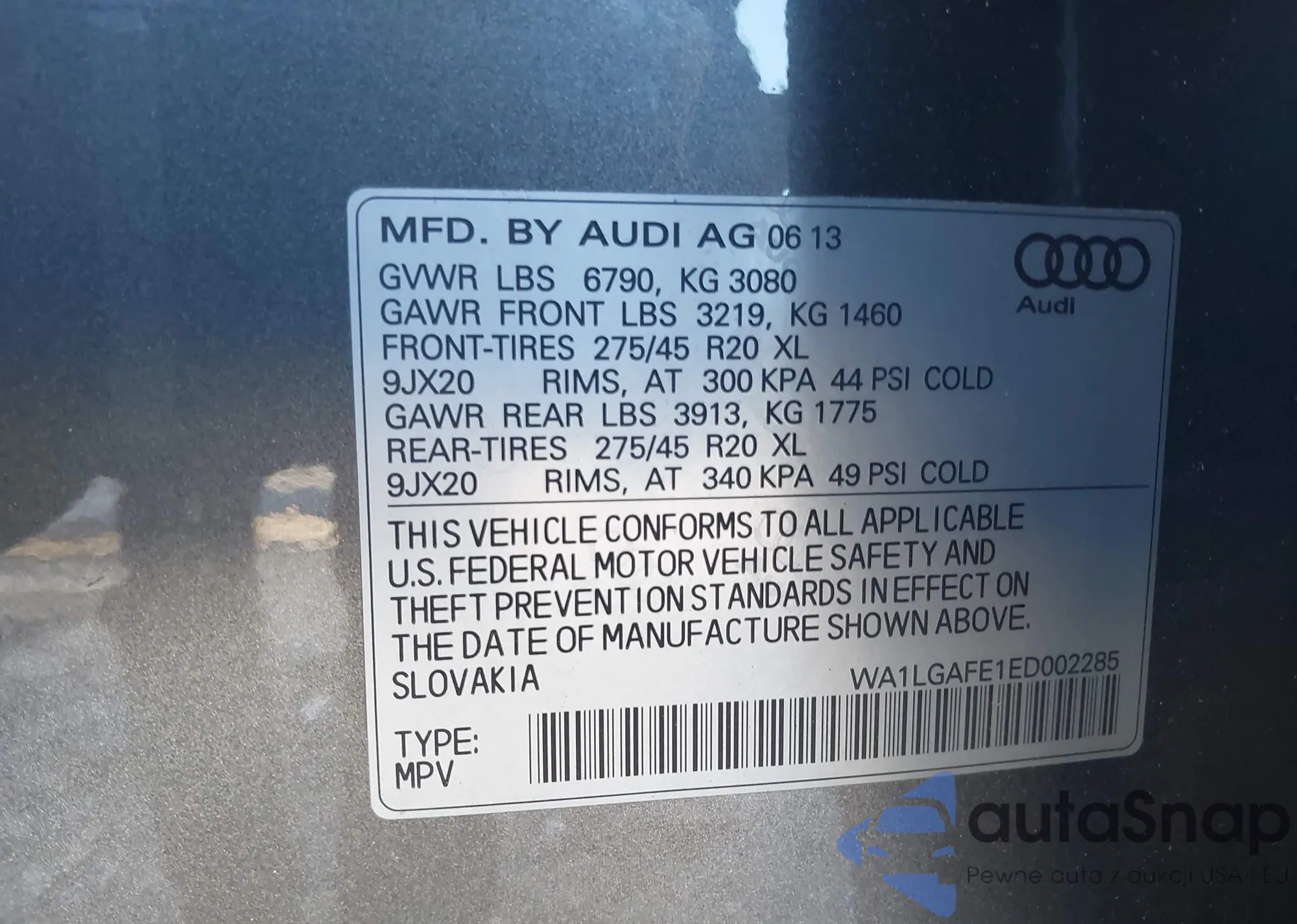 LOT: 43492640 VIN: WA1LGAFE1ED002285