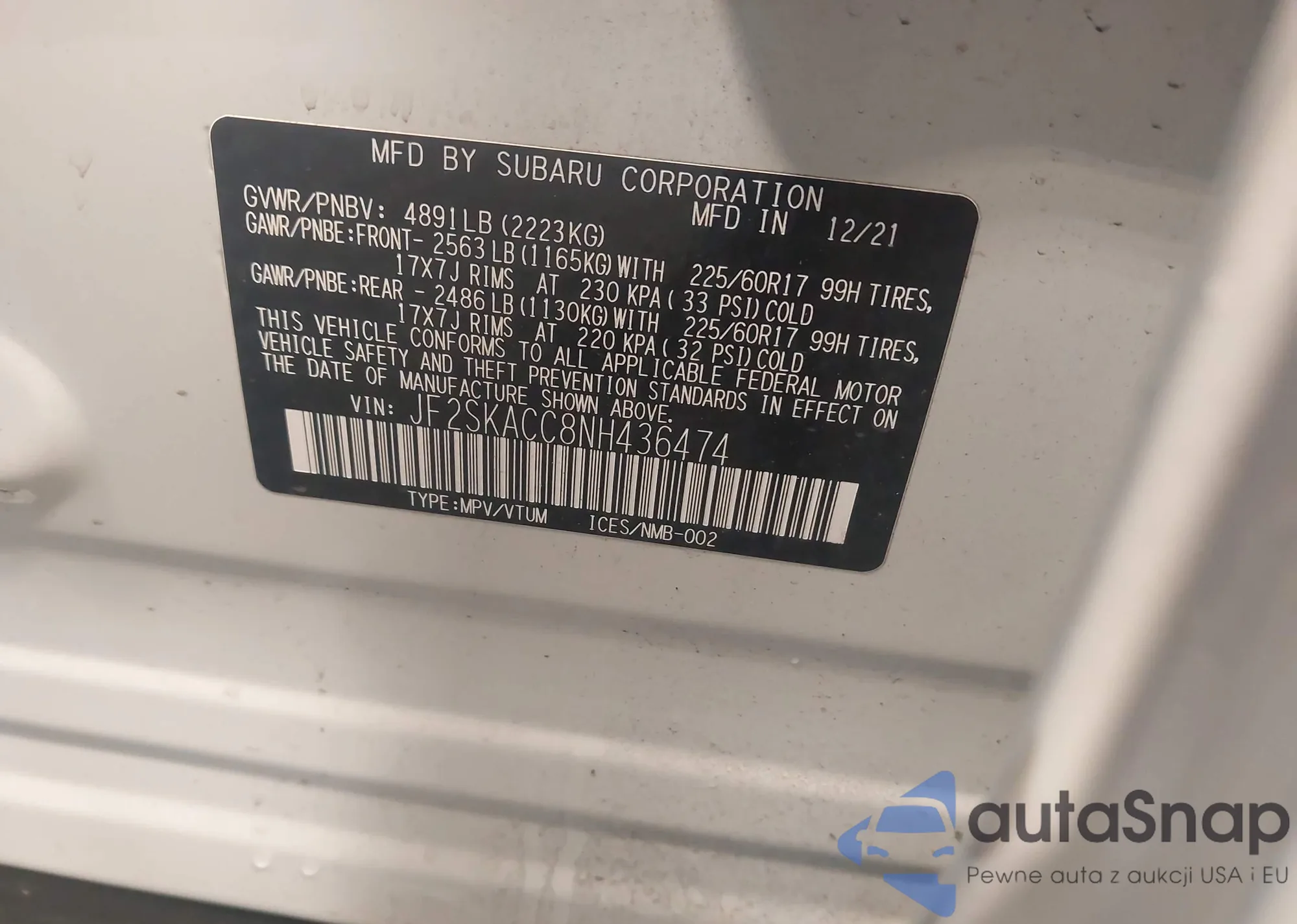 • VIN JF2SKACC8NH436474