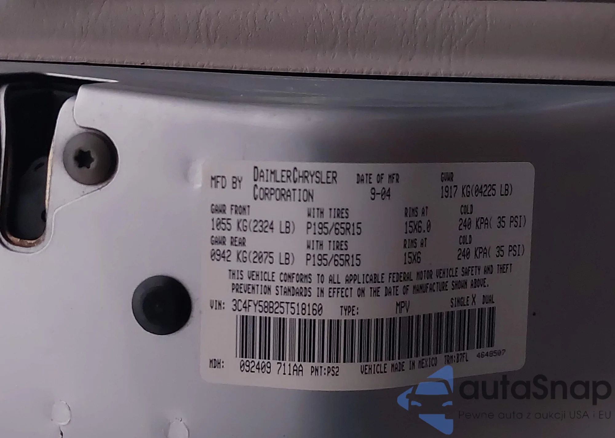 • VIN 3C4FY58B25T518160