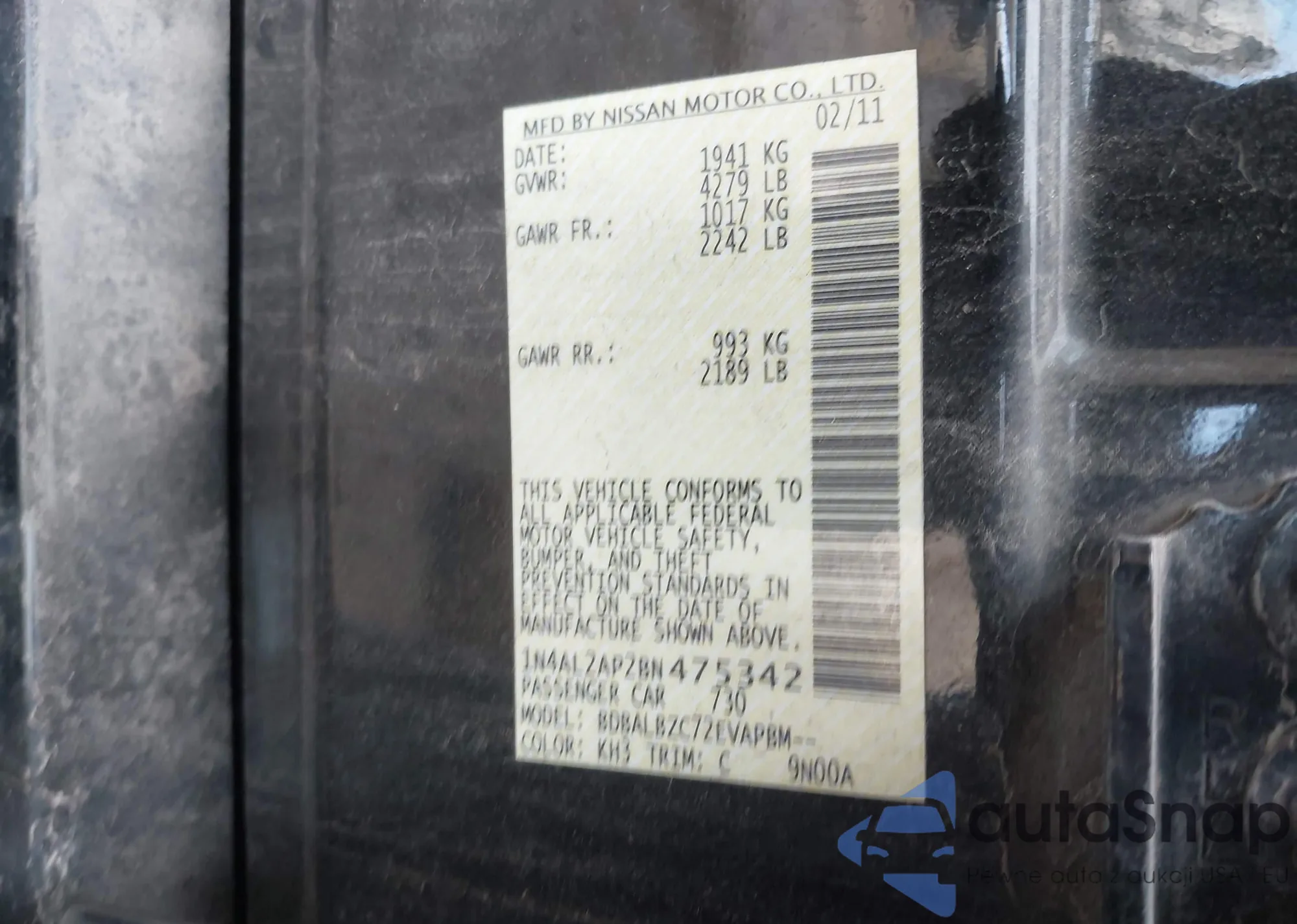 • VIN 1N4AL2AP2BN475342