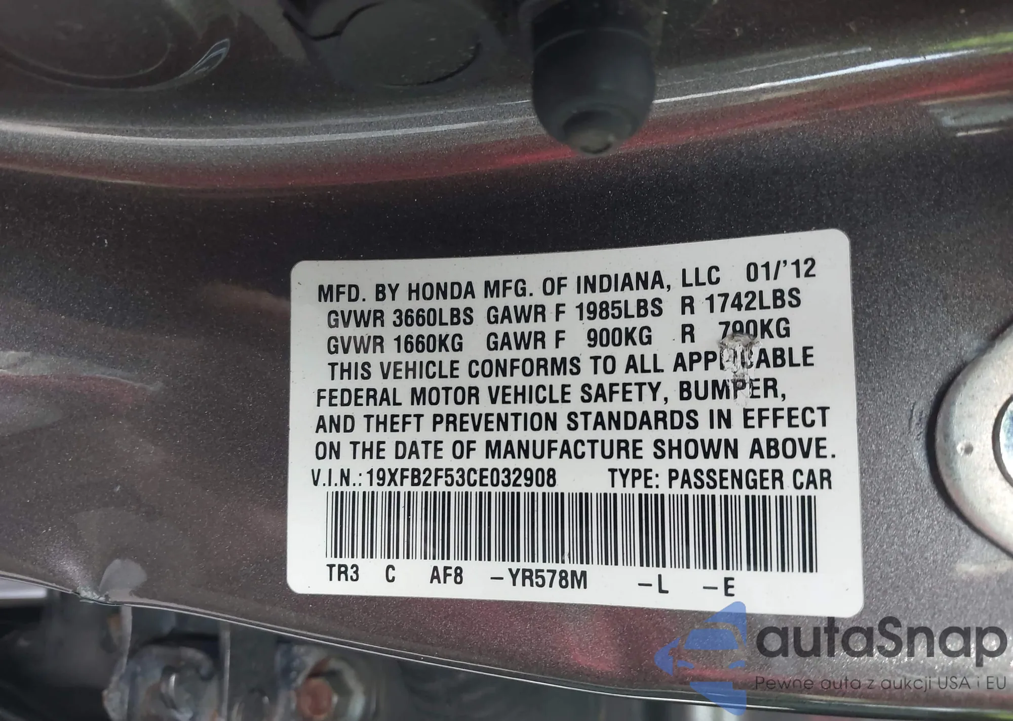 LOT: 44058456 VIN: 19XFB2F53CE032908