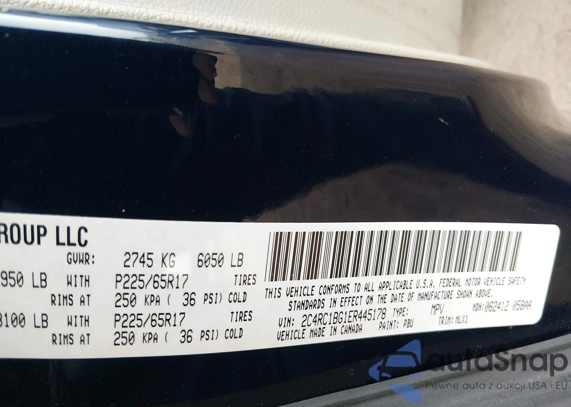• VIN 2C4RC1BG1ER445178