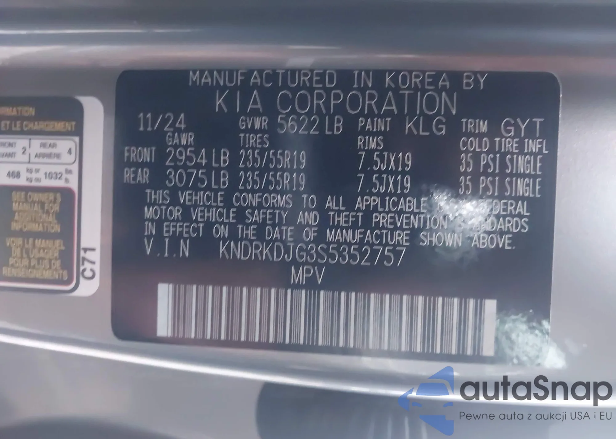 • VIN KNDRKDJG3S5352757