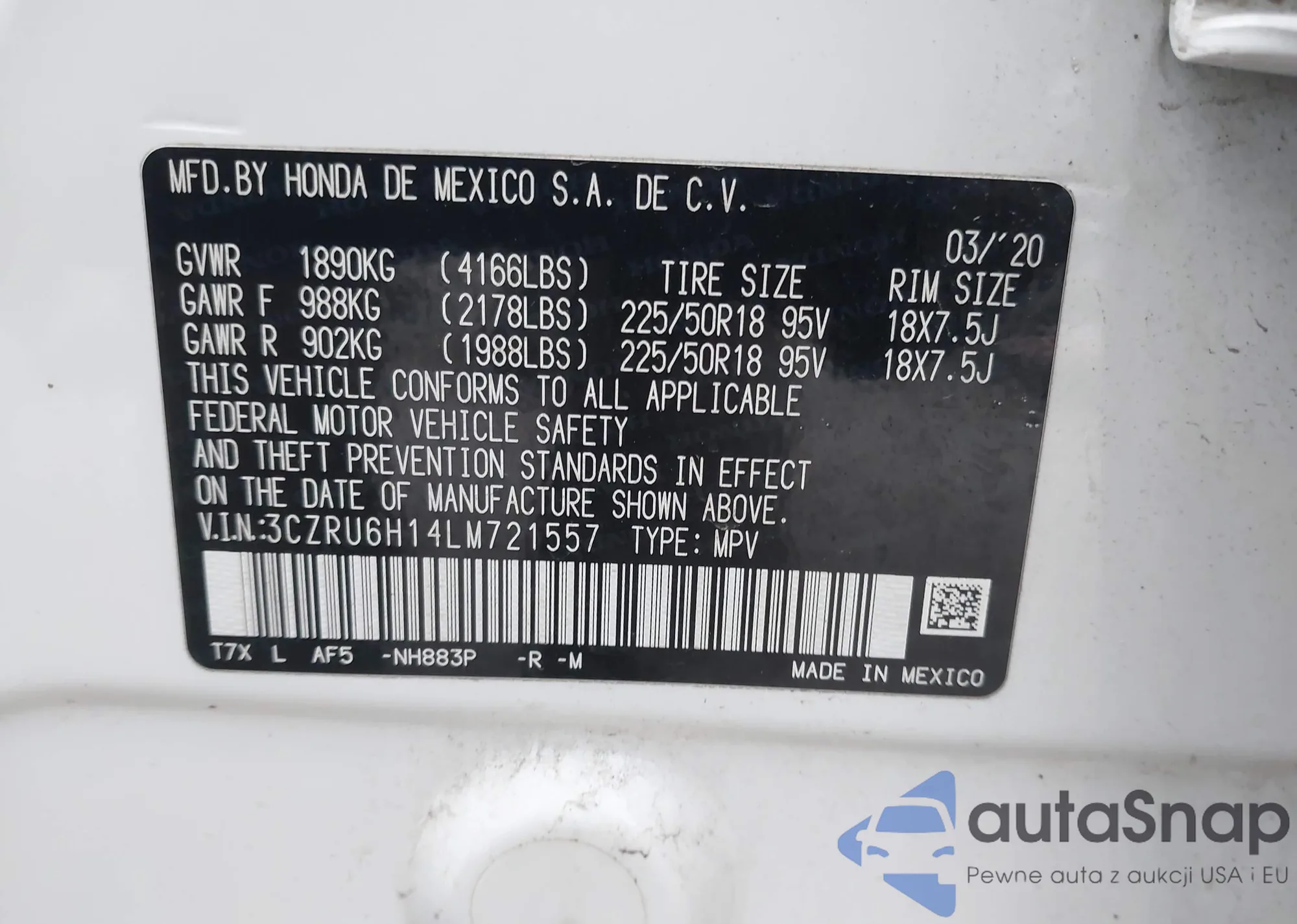 • VIN 3CZRU6H56NM753061