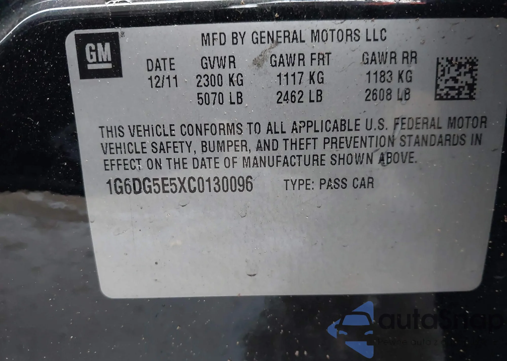 • VIN 1G6DG5E5XC0130096