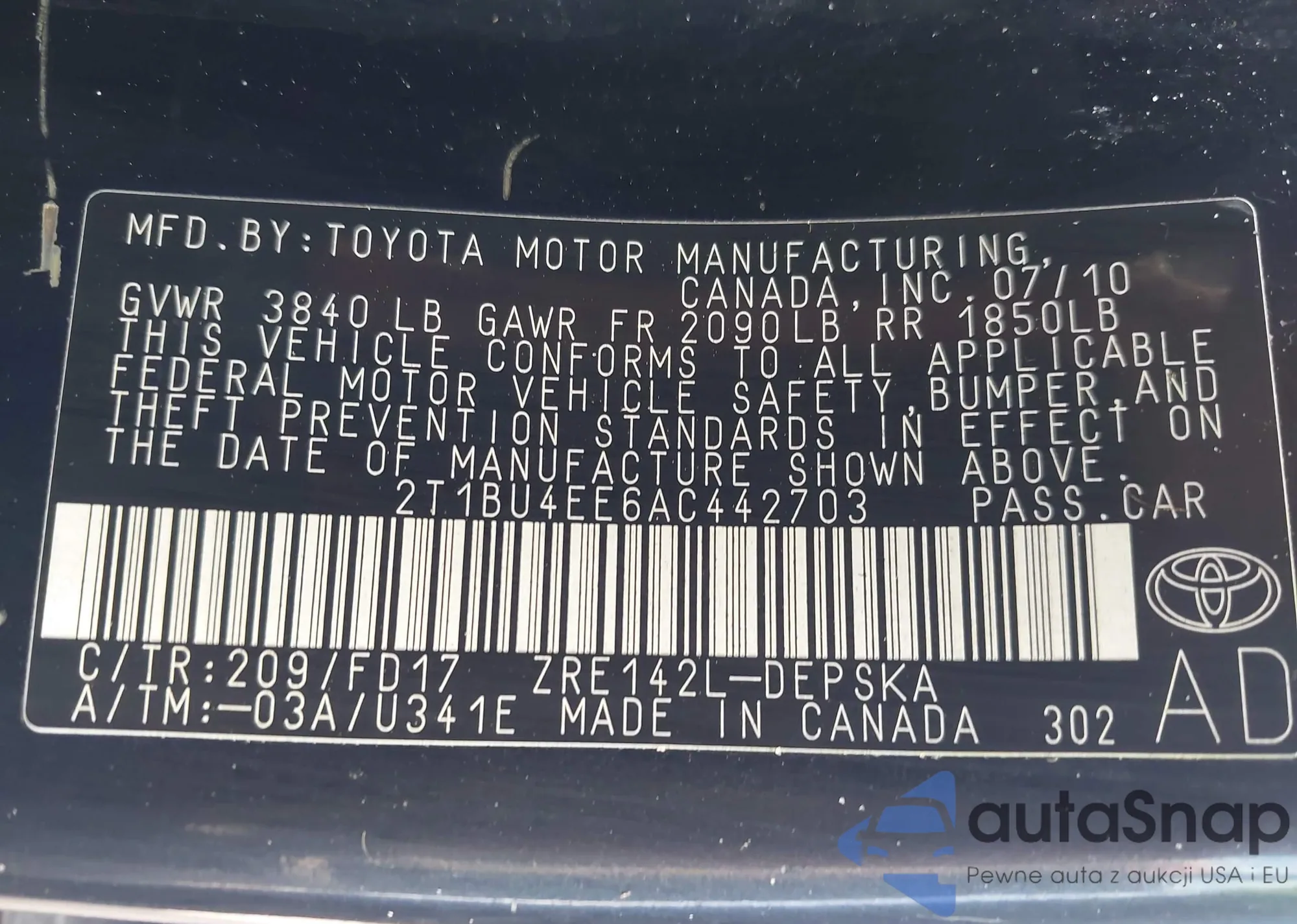 • VIN 4T1DAACKXSU641102