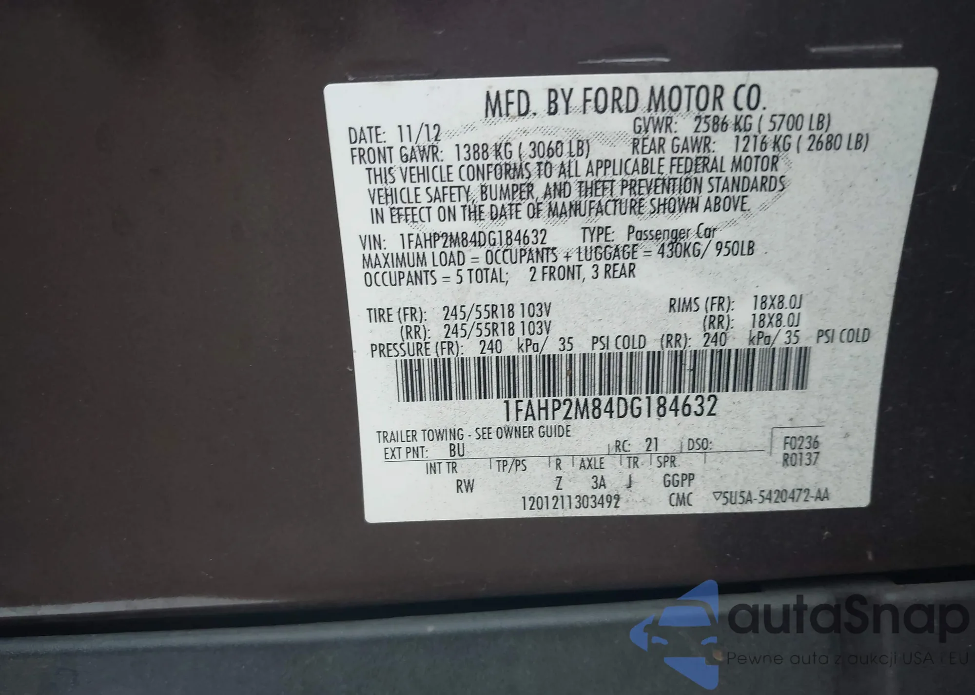 • VIN 1FAHP2M84DG184632