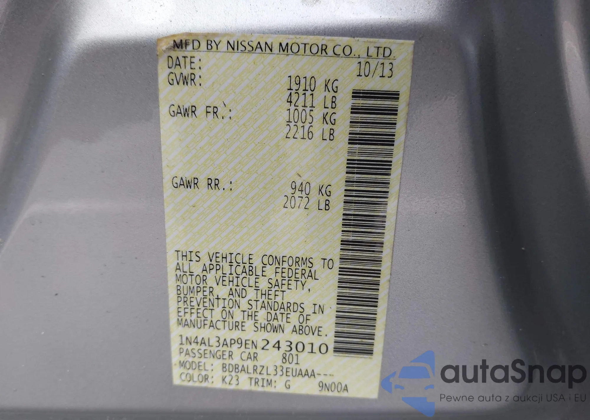 LOT: 43043744 VIN: 1N4AL3AP9EN243010