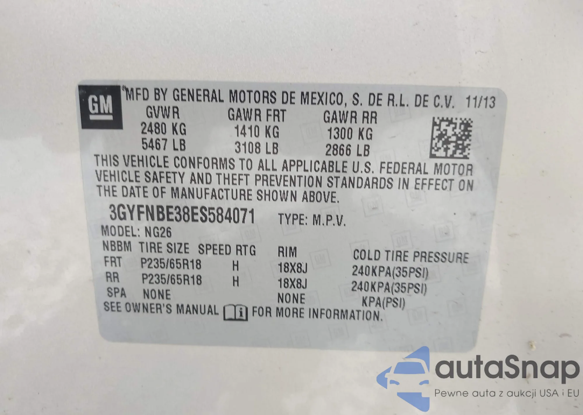 • VIN 3GYFNBE38ES584071