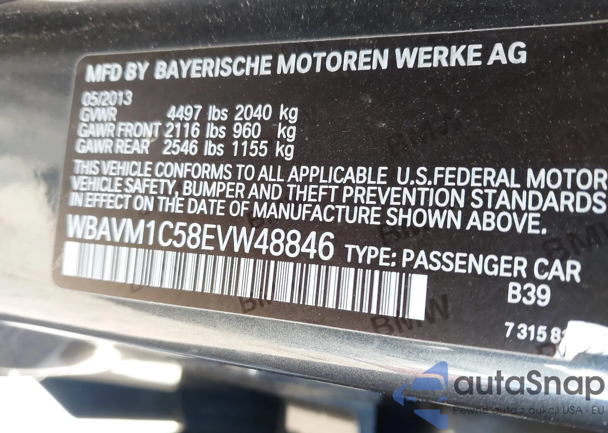 • VIN WBAVM1C58EVW48846