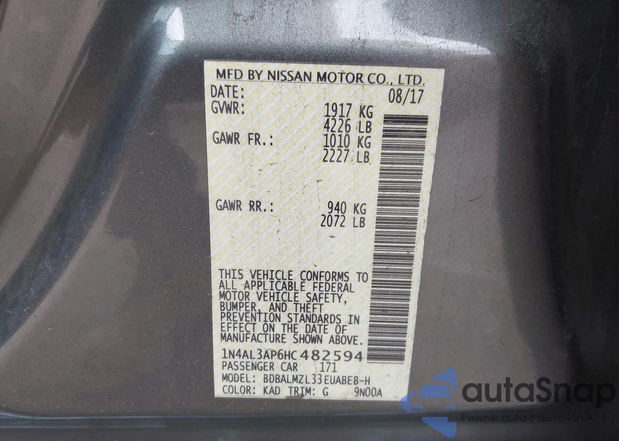 • VIN 1N4AL3AP9EN243010