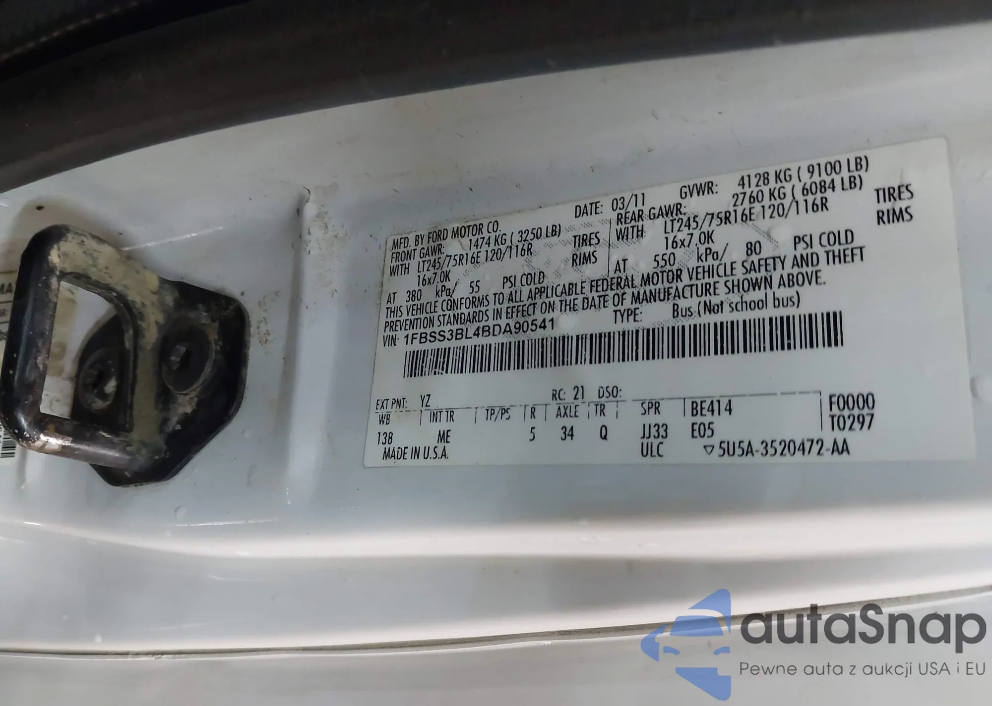 • VIN 1FBSS3BL4BD890541