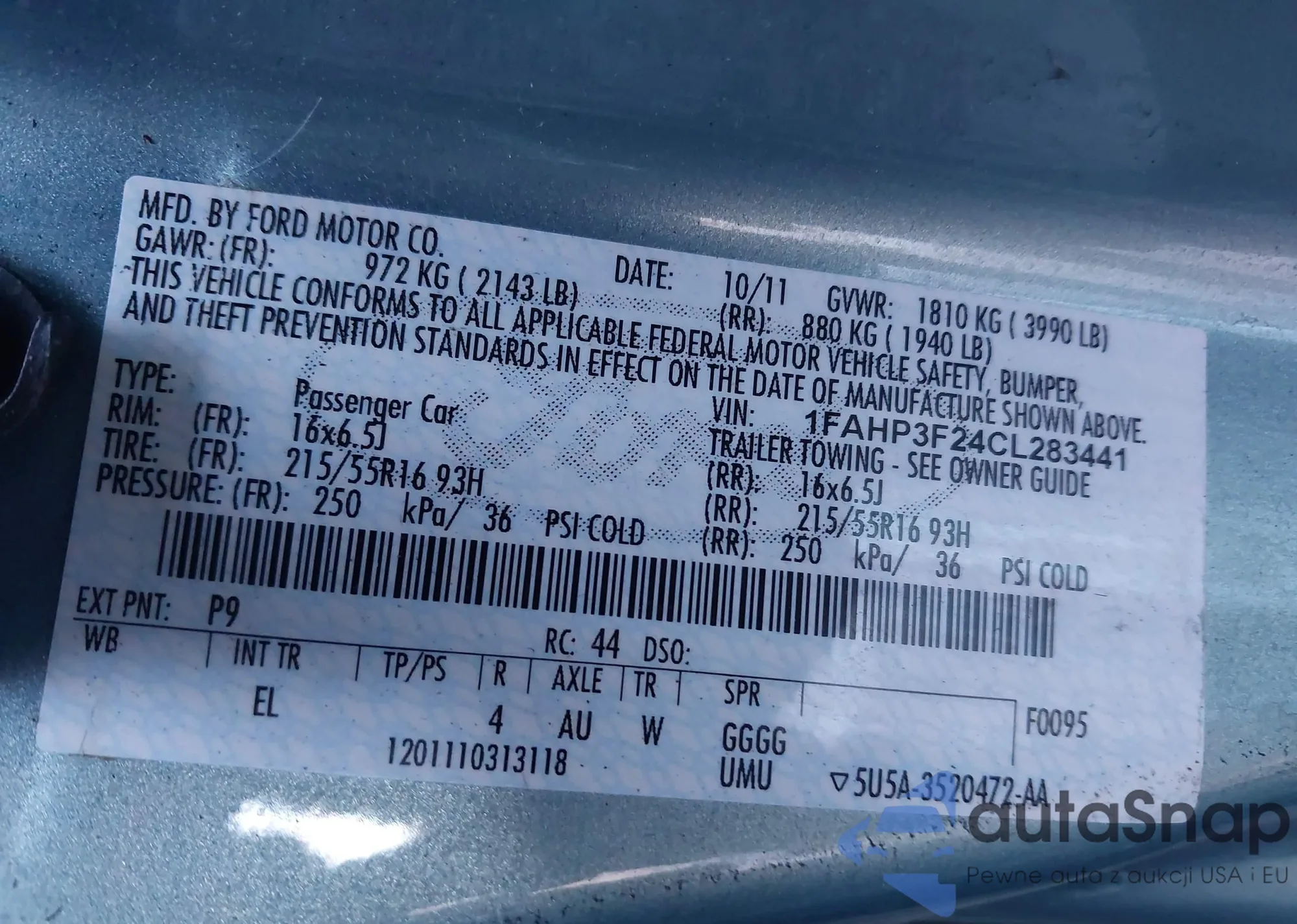 LOT: 43950559 VIN: 1FAHP3F24CL283441