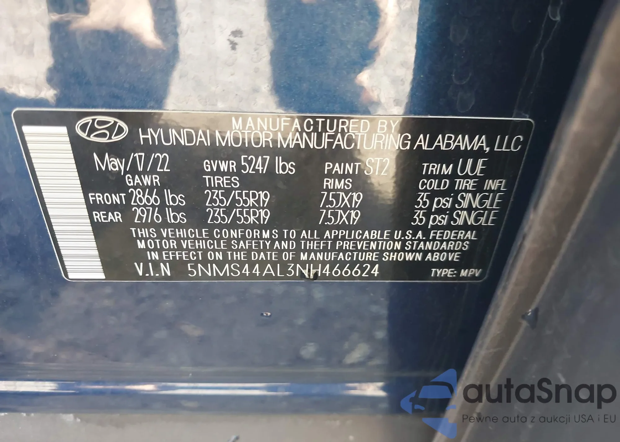• VIN 5NMS44AL3NH466624