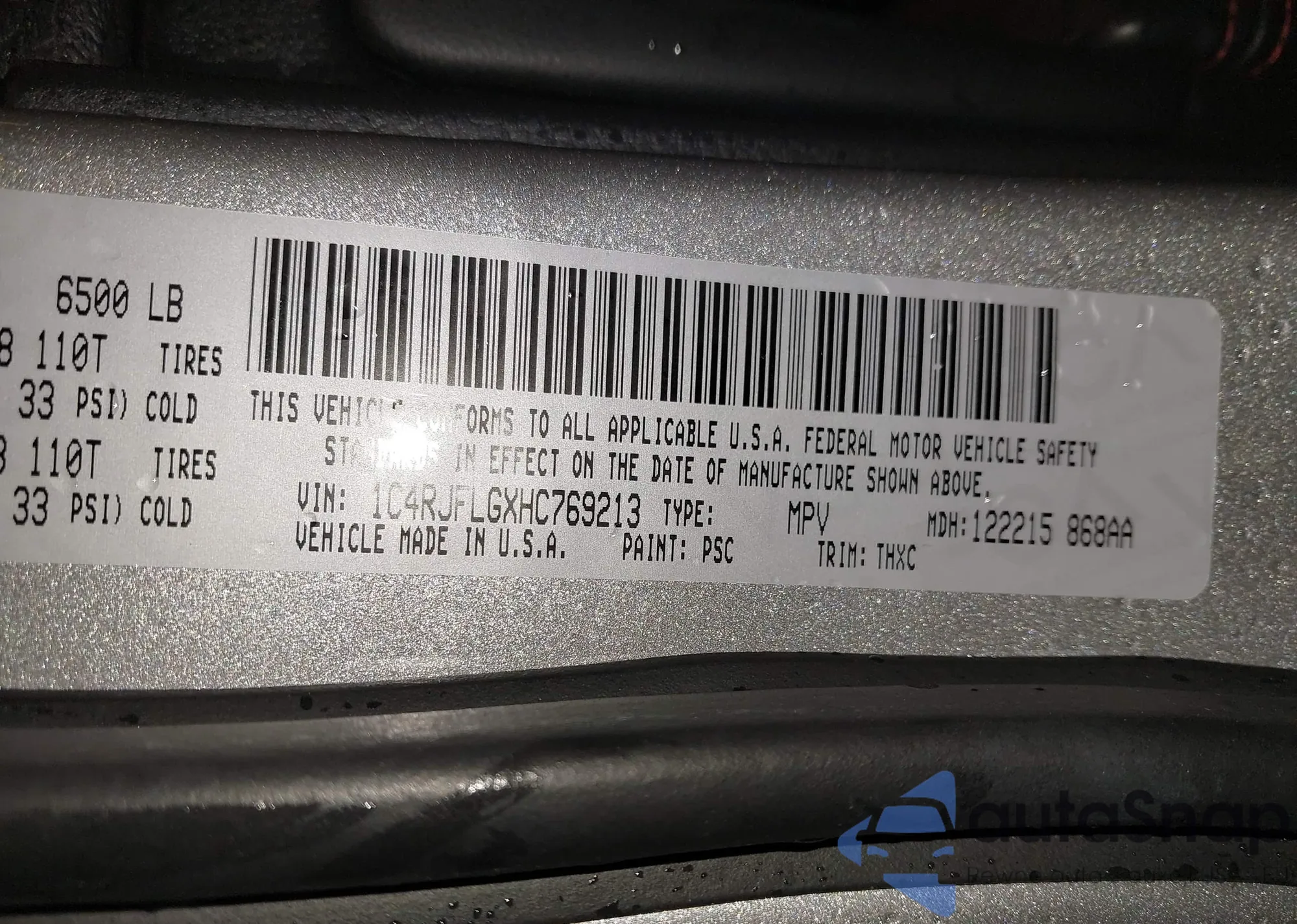 • VIN 1C4RJFLGXHC769213