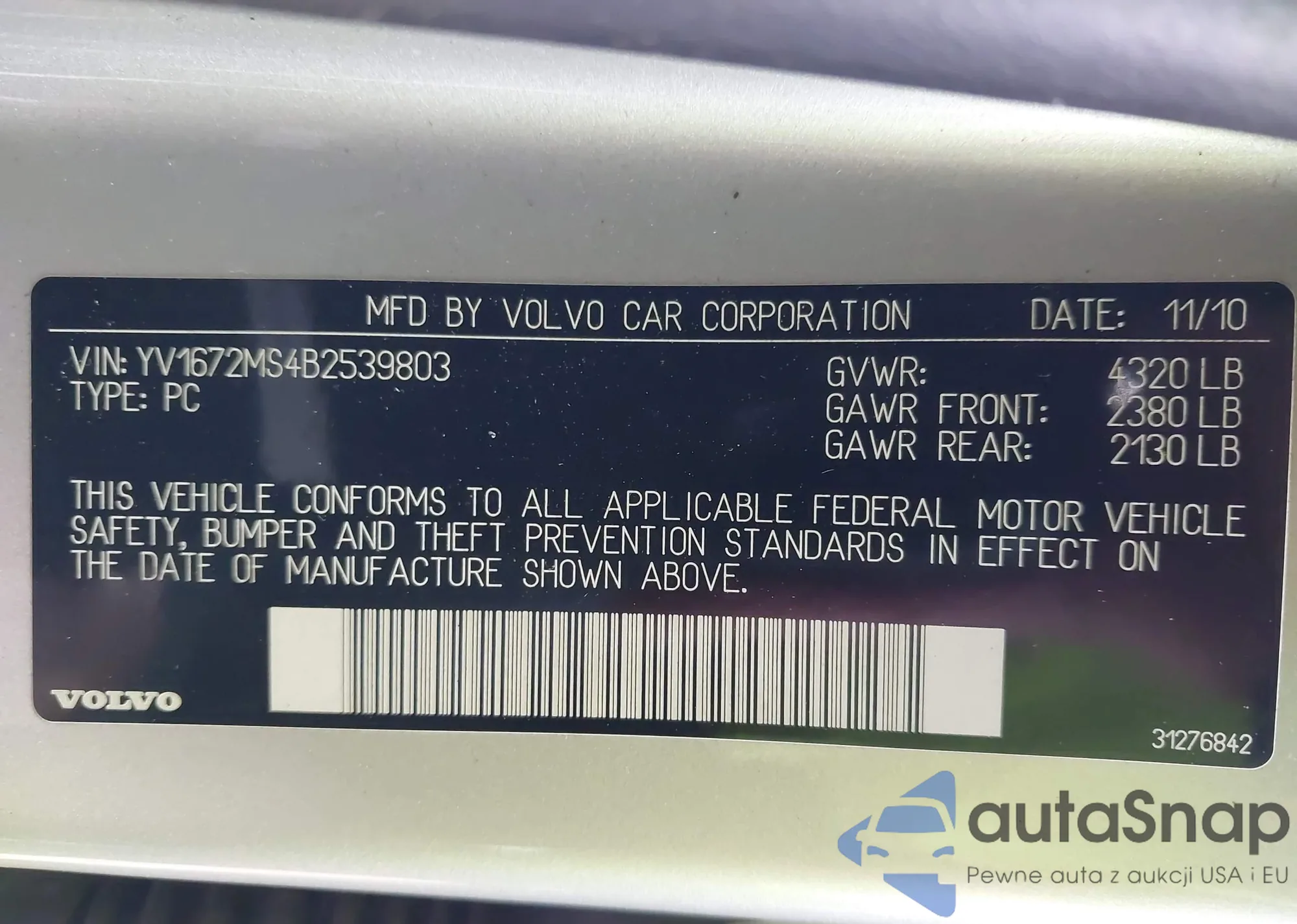 LOT: 43776120 VIN: 4S3BNAF67H3048276