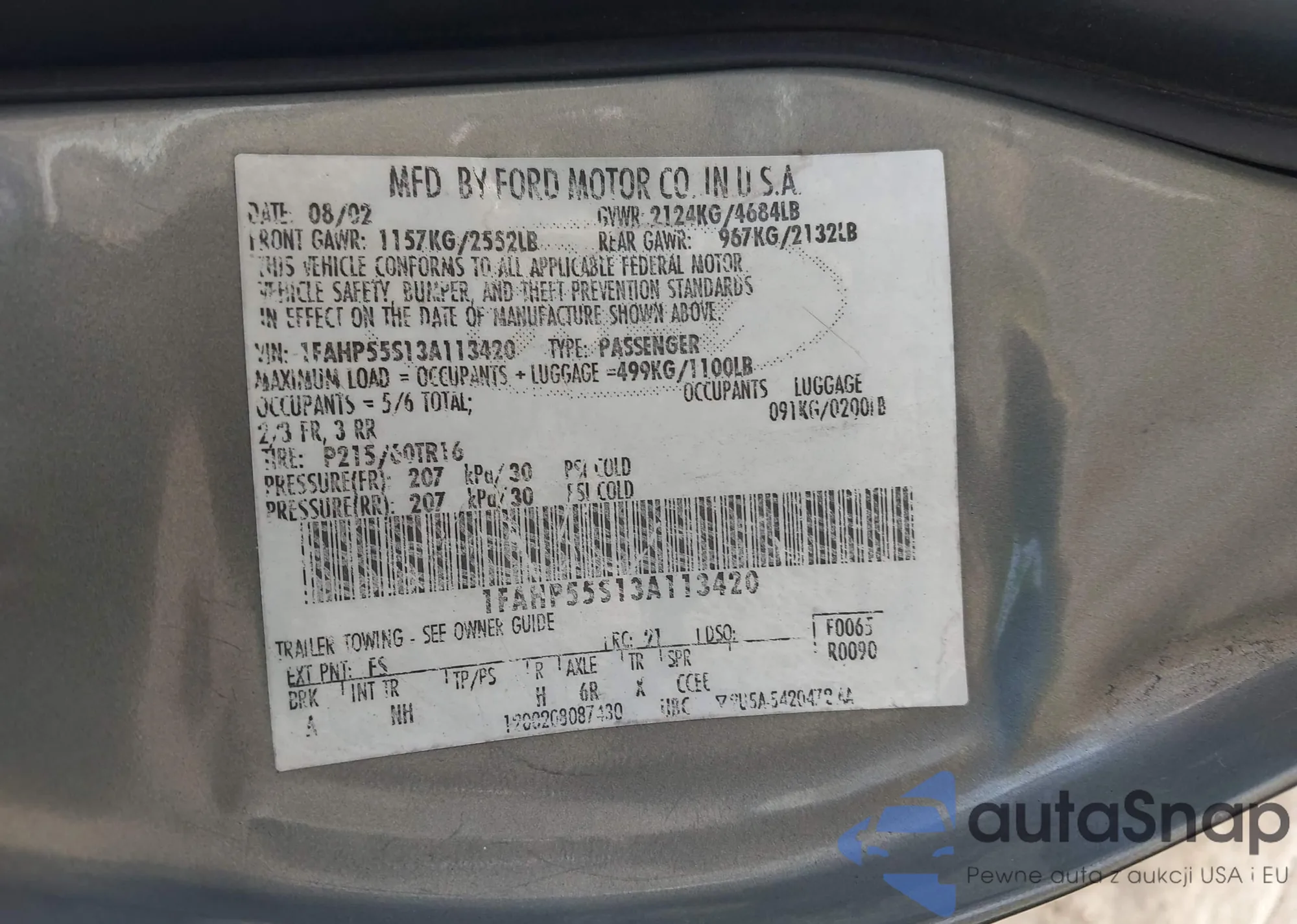 LOT: 44092307 VIN: 1FAHP55S13A113420