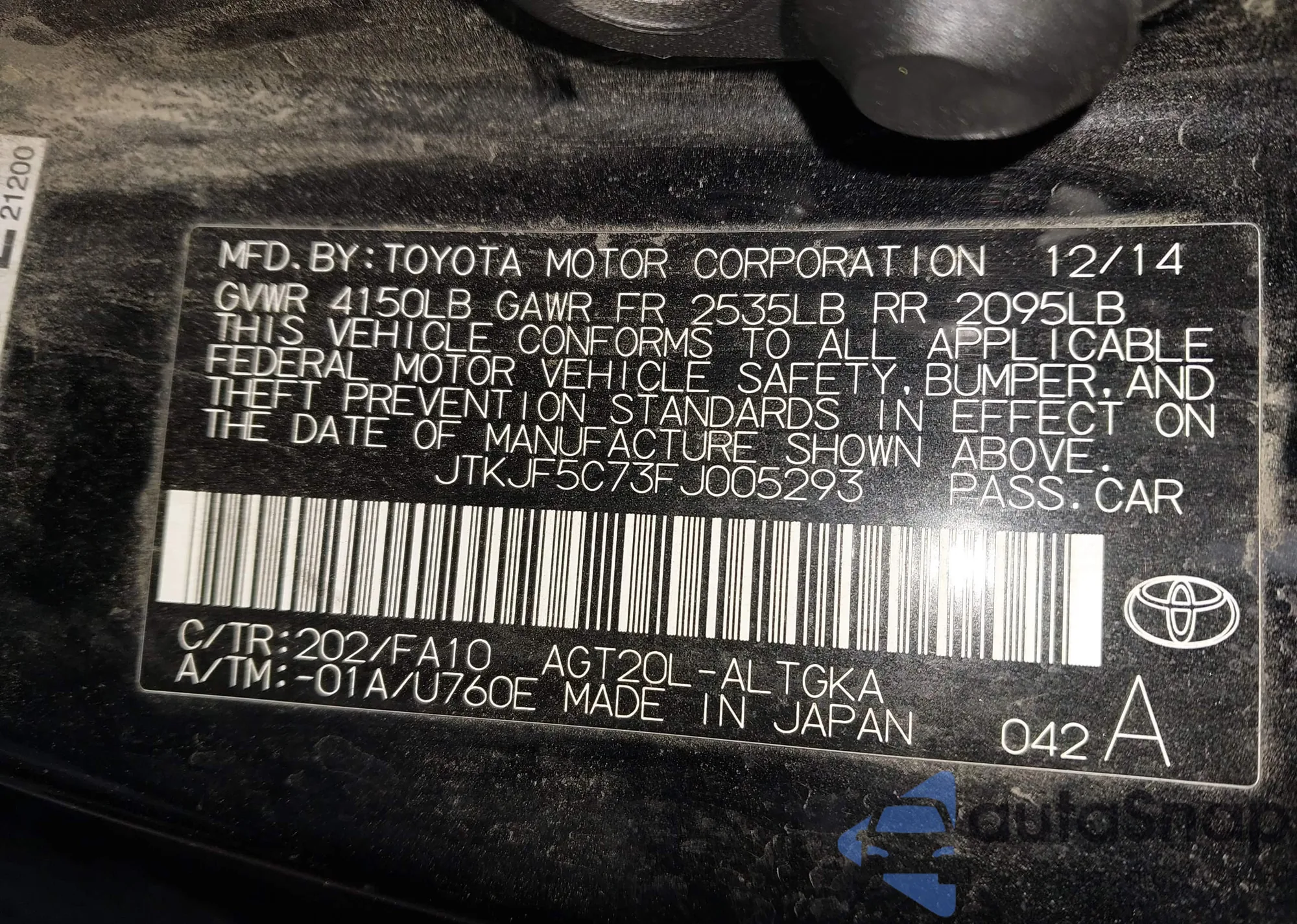 • VIN JTKJF5C73FJ005293