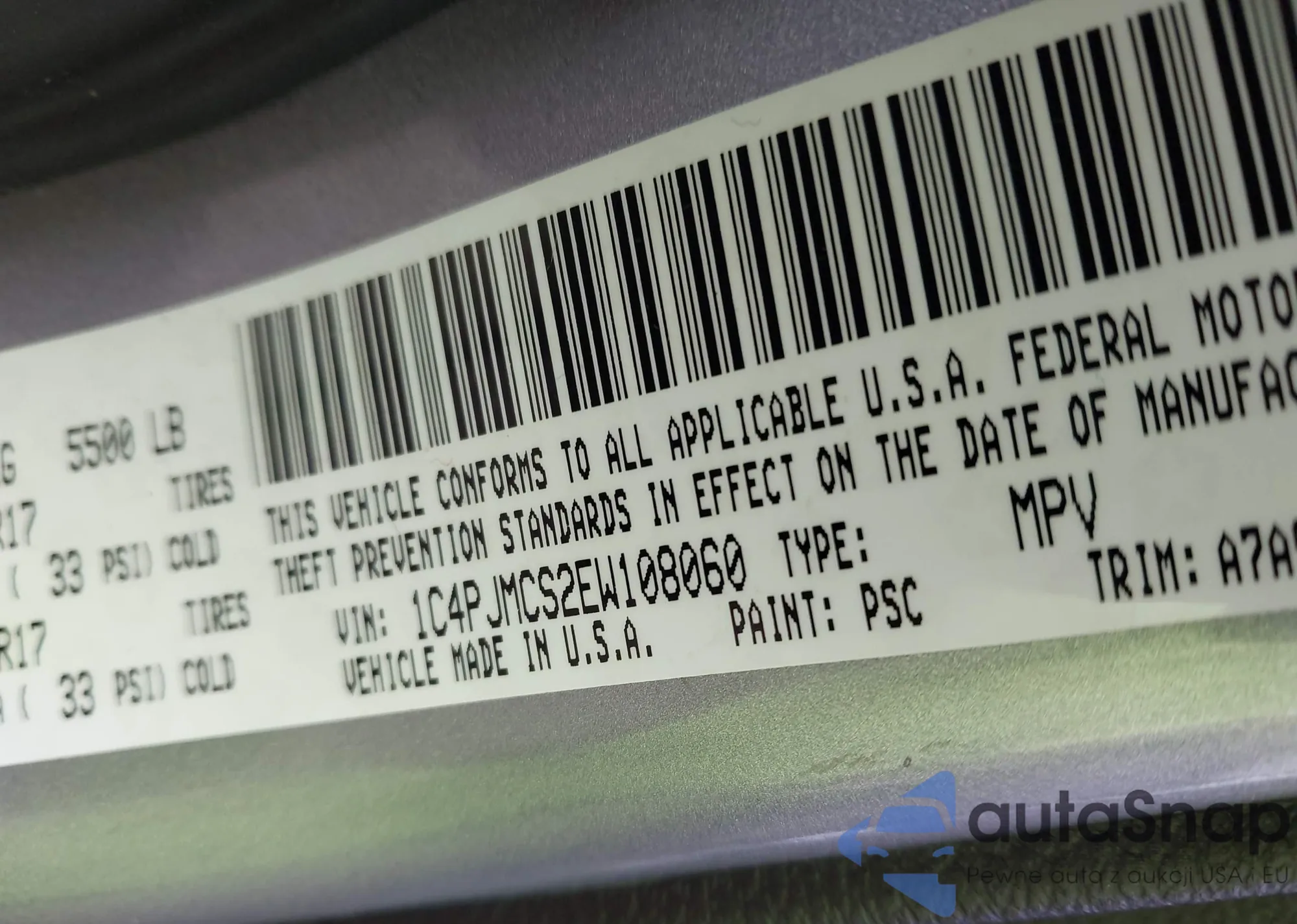• VIN 1C4PJMCS2EW108060