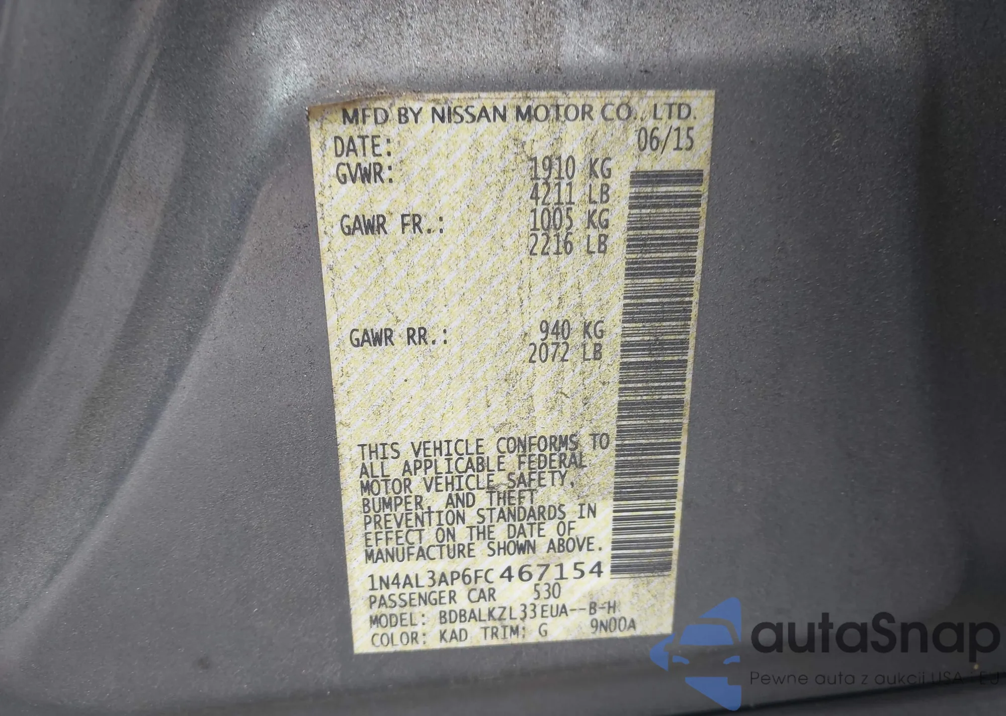 LOT: 43794114 VIN: 1N4AL3AP6FC467154