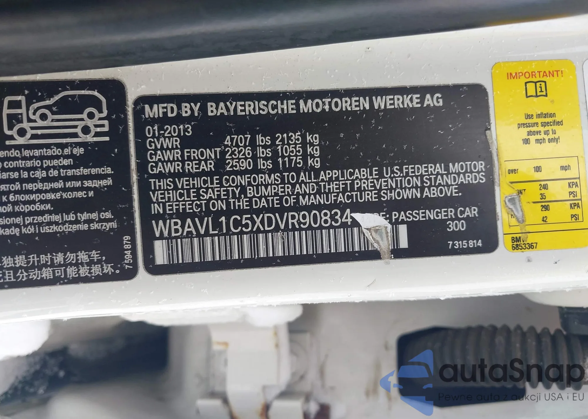 • VIN WBAVL1C5XDVR90834