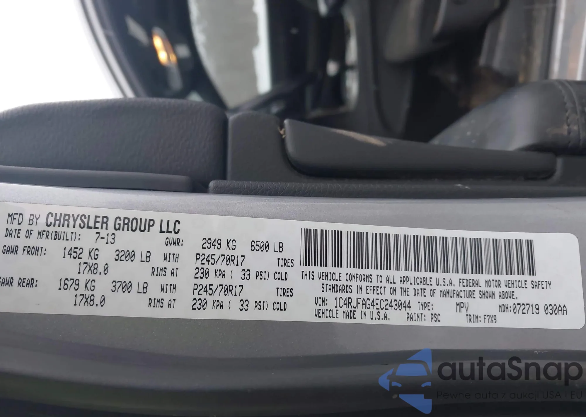 • VIN 1C4RJFAG4EC243044