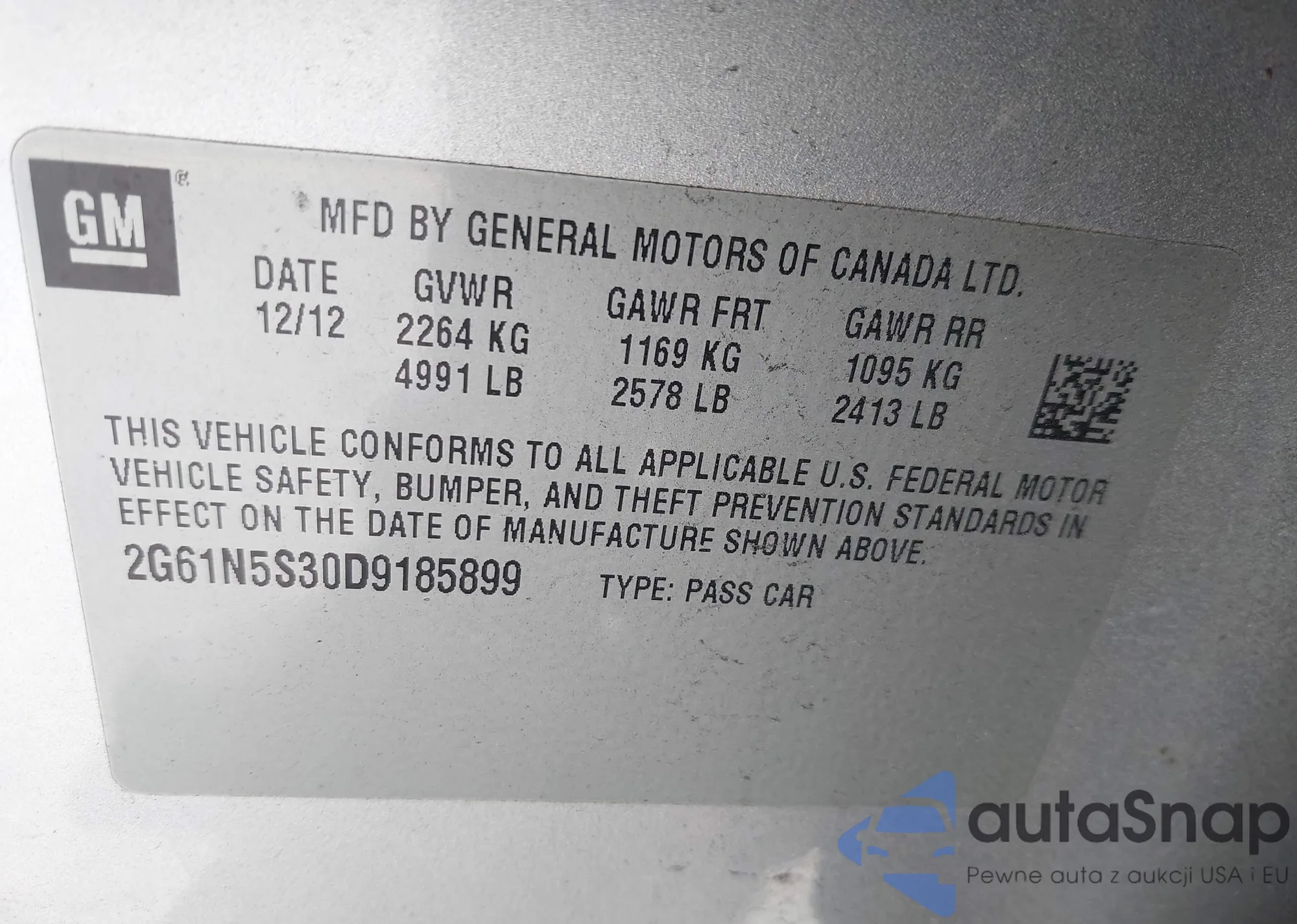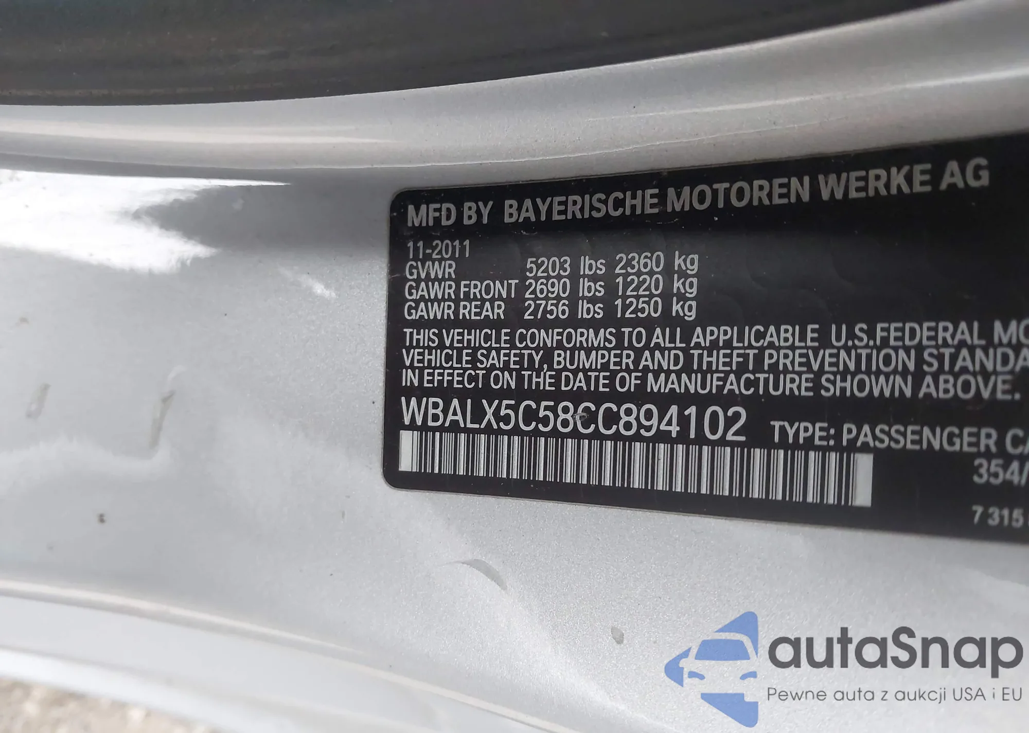 • VIN WBALX5C58CC894102