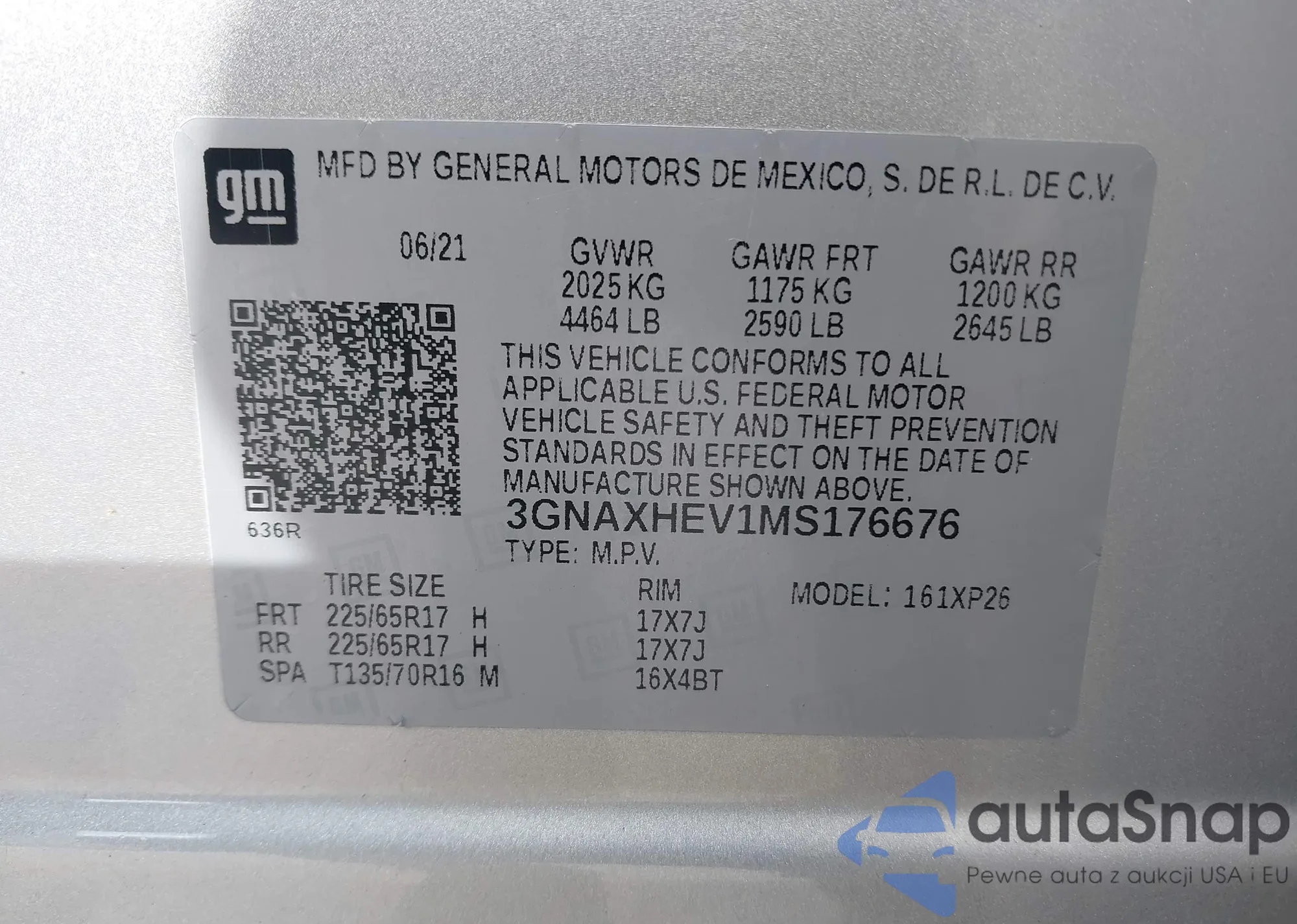 LOT: 44008354 VIN: JN1EV7AP9GM304753
