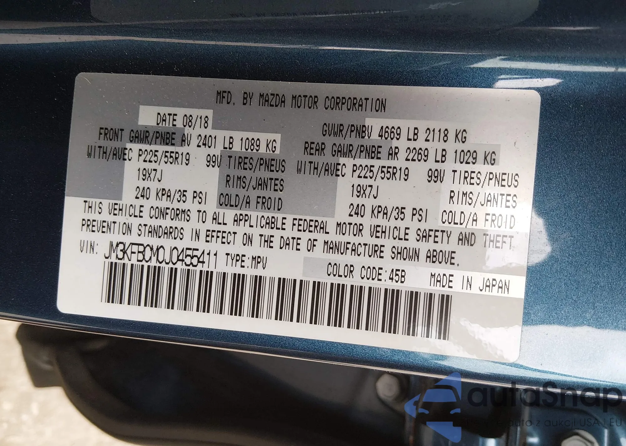 LOT: 43987411 VIN: WBALX5C58CC894102