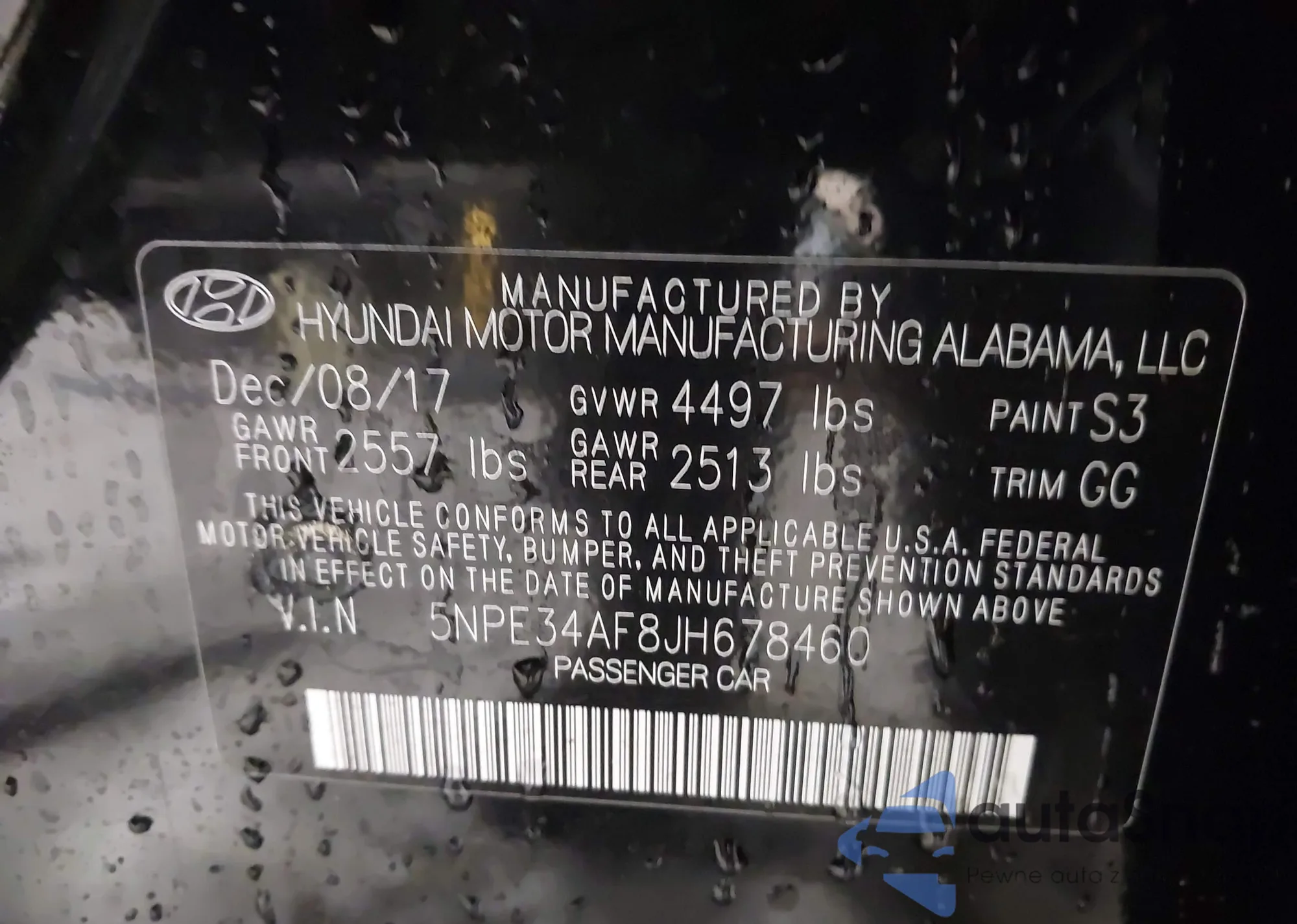 • VIN 5NPE34AF8JH678460